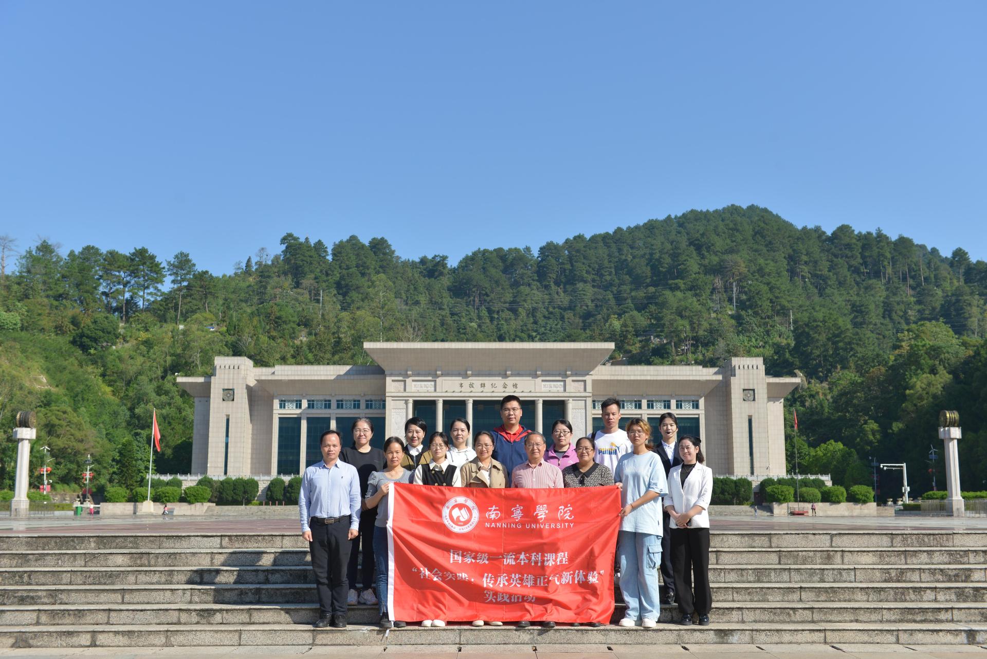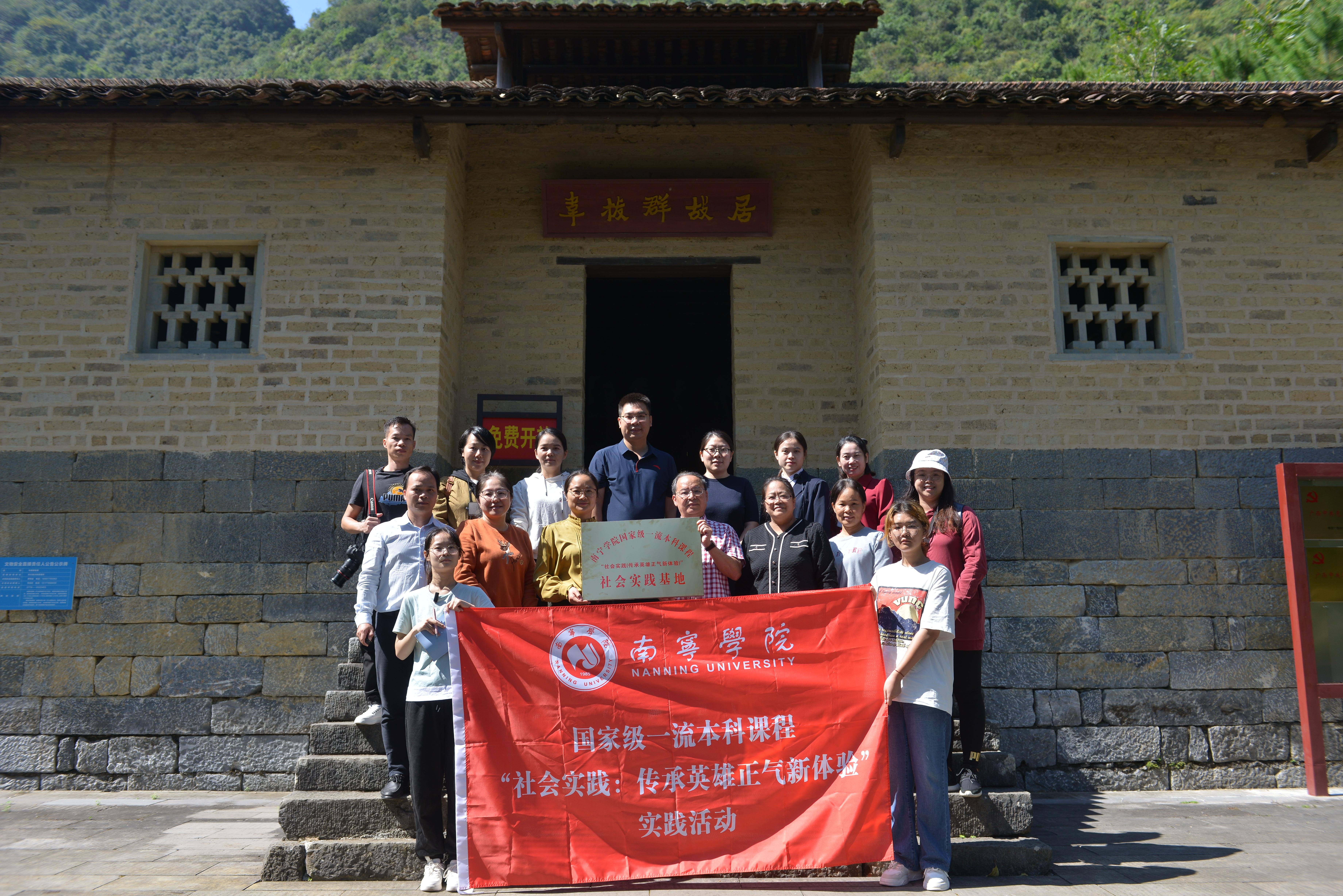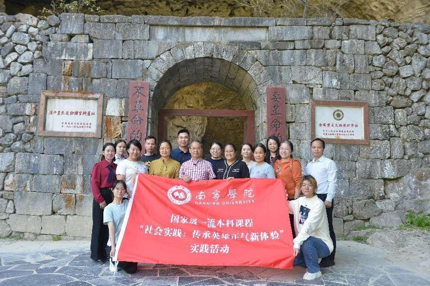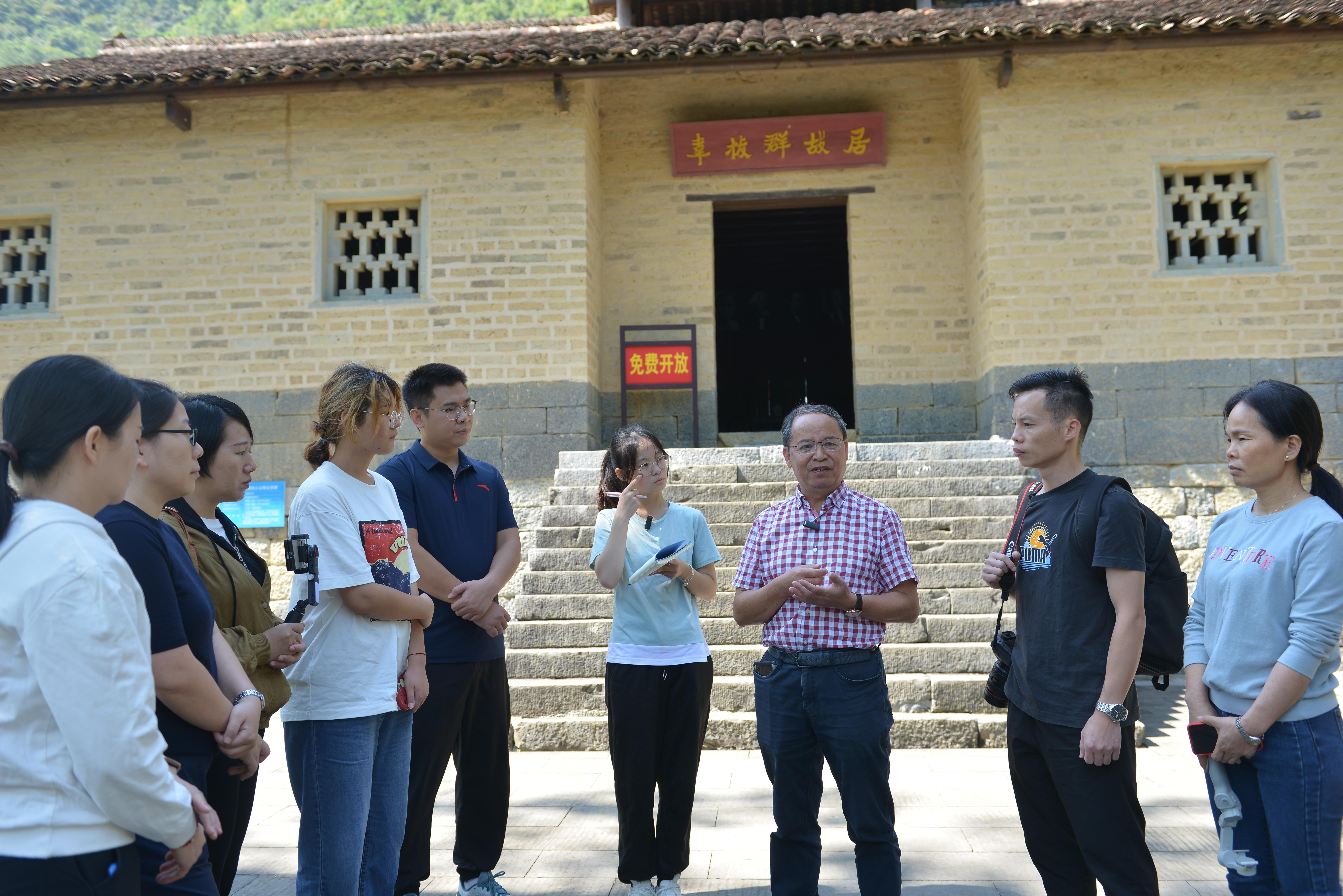2023年10月21日—22日,Beat365中文官方网站国家级一流本科课程“社会实践(传承英雄正气新体验)”课程团队赴广西河池市东兰县开展主题调研,东兰县政协副主席覃穆耘、壮乡英雄文化园管理处副主任韦秋萍等协助开展调研并参加相关活动。社会实践的调研点主要有:东里革命陈列室、韦拔群故居、广西农民运动讲习所、中共红七军前委武篆魁星楼旧址、东兰铜鼓博物馆、东兰烈士陵园、韦拔群广场等。