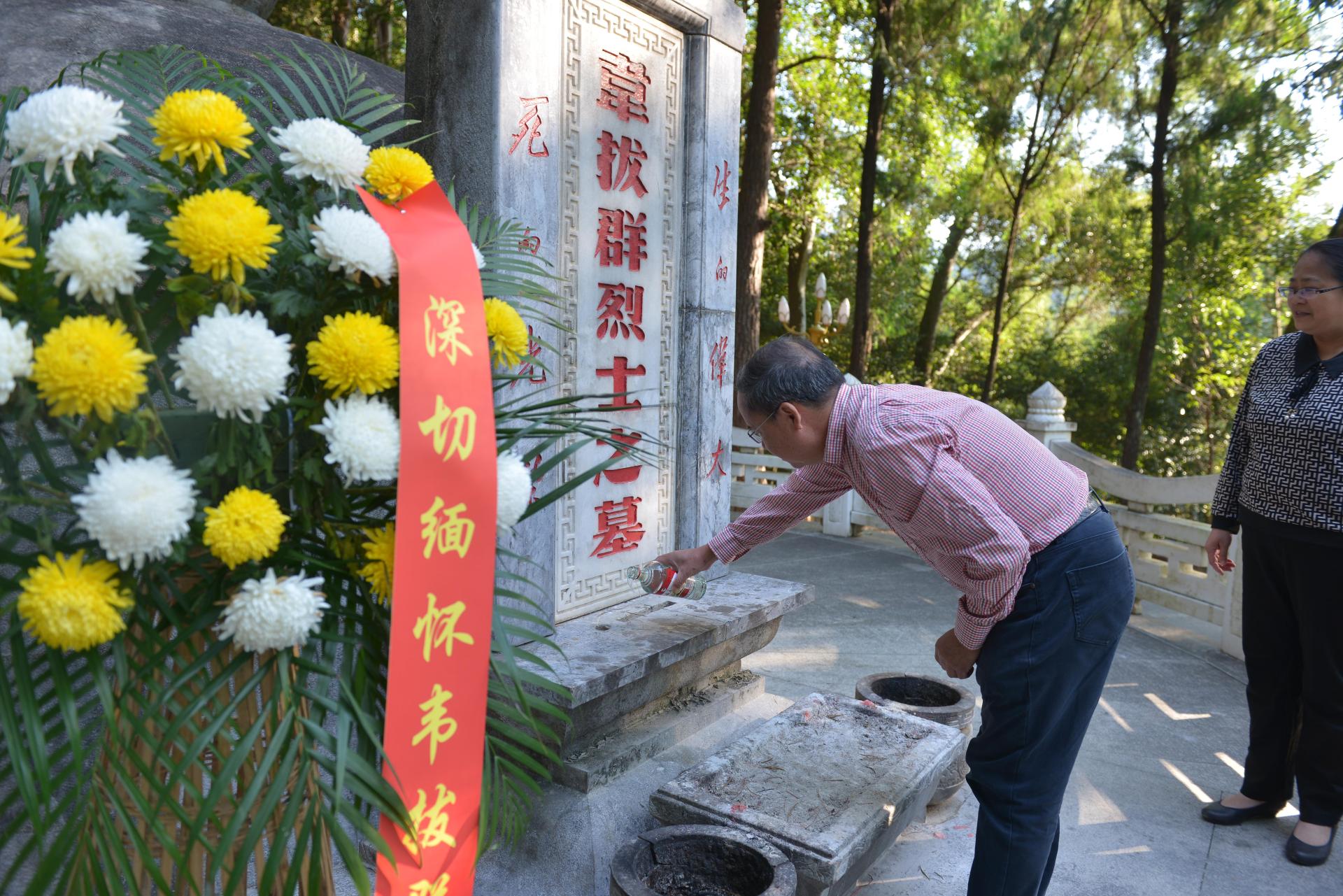 陈雄章教授向韦拔群烈士墓敬酒