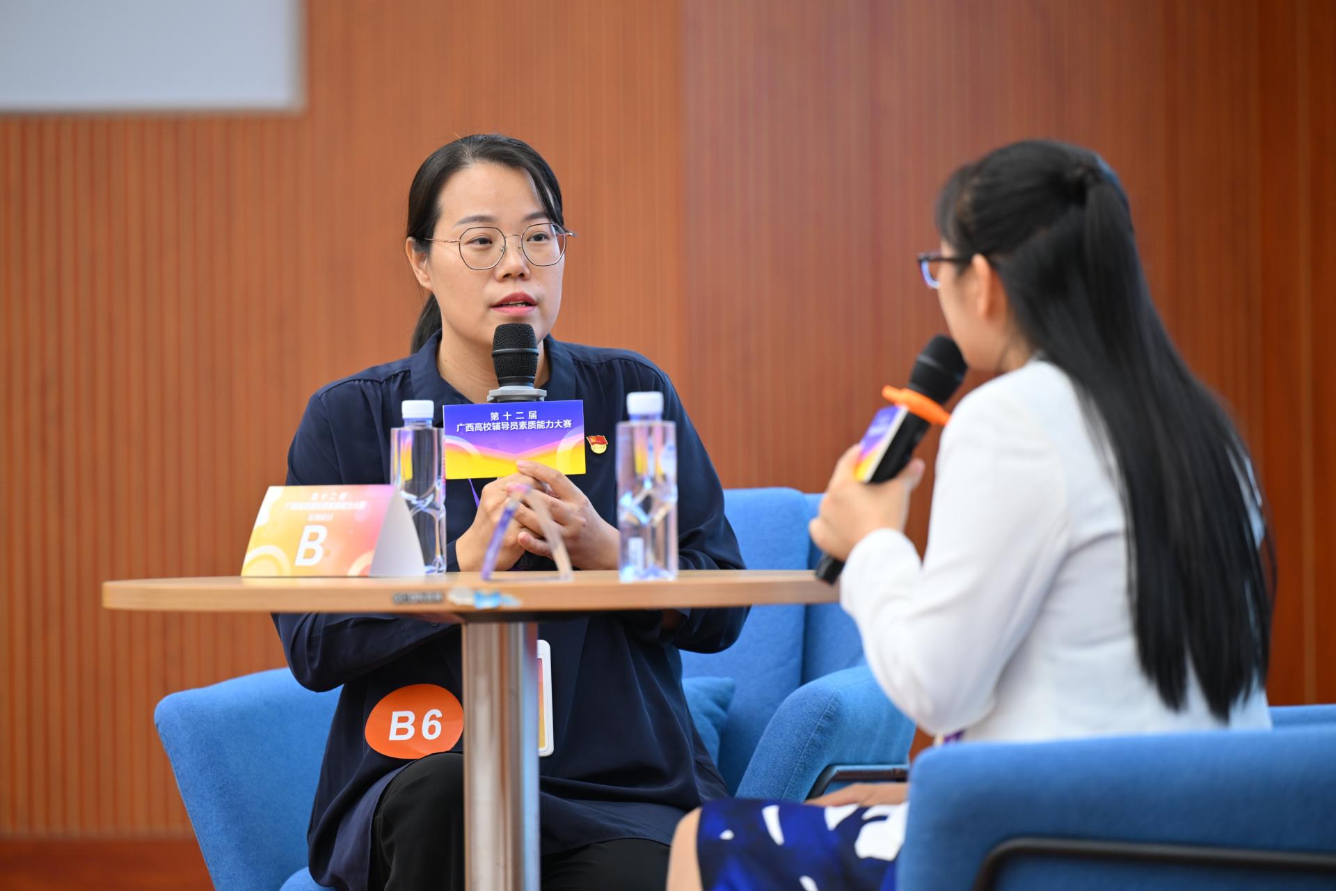 本次大赛由广西壮族自治区教育厅主办,教育部高校思想政治工作队伍培训研修中心(广西师范大学)承办,由来自全区82所高校的92名优秀辅导员同台竞技。大赛分为基础知识测试、案例研讨、谈心谈话三个环节,综合考察辅导员的理论水平、专业素养以及解决实际问题的能力等多方面知识和技能,是展示辅导员工作技能、提高业务水平、拓展理论视野的交流平台。