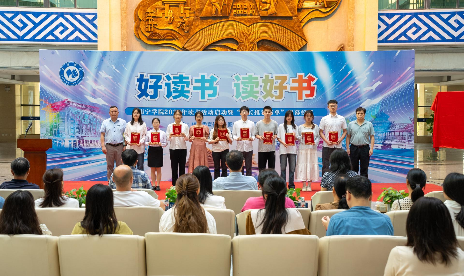 为深入贯彻落实中央、自治区关于深化全民阅读活动的部署要求,全面推进学校阅读文化建设,在第三十个“世界读书日”,学校在图书馆中庭举行“好读书 读好书”2025年读书活动启动暨“校长推荐书单”揭幕仪式。全体校领导、图书捐赠企业代表及学校“勤奋读者”等师生代表共200余人参加开幕式。