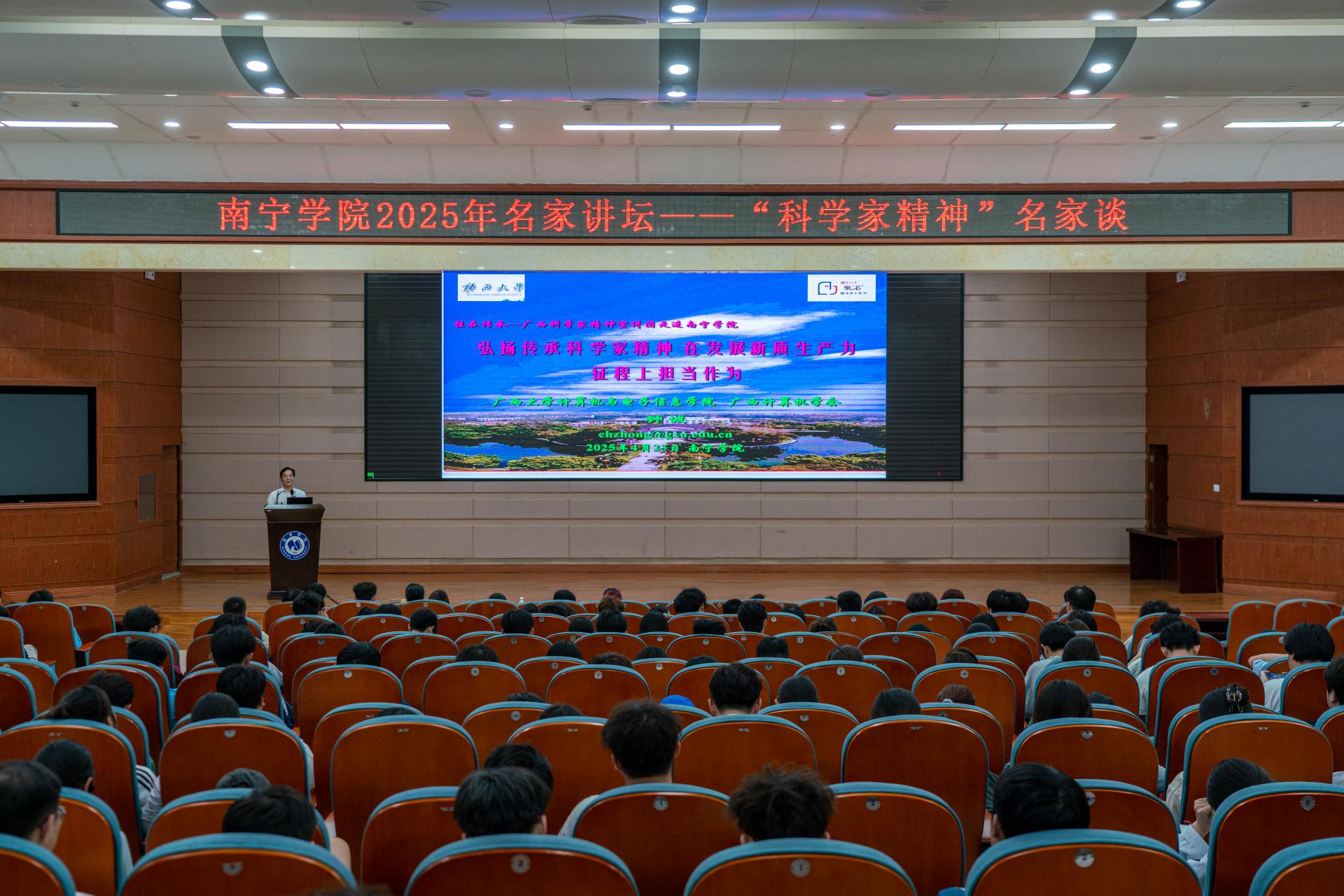 为落实立德树人根本任务,迎接第30个“世界读书日”,依托不孤湖大讲堂,弘扬科学家精神,激发学生创新创造活力,助力学校校风建设,4月23日下午,学校在图书馆报告厅举办2025年名家讲坛。本次讲坛特邀中国科学家精神宣讲团成员、广西大学二级教授、博士生导师钟诚作题为《弘扬传承科学家精神 在发展新质生产力征程上担当作为》的专题讲座,各学院师生代表500余人到场聆听。