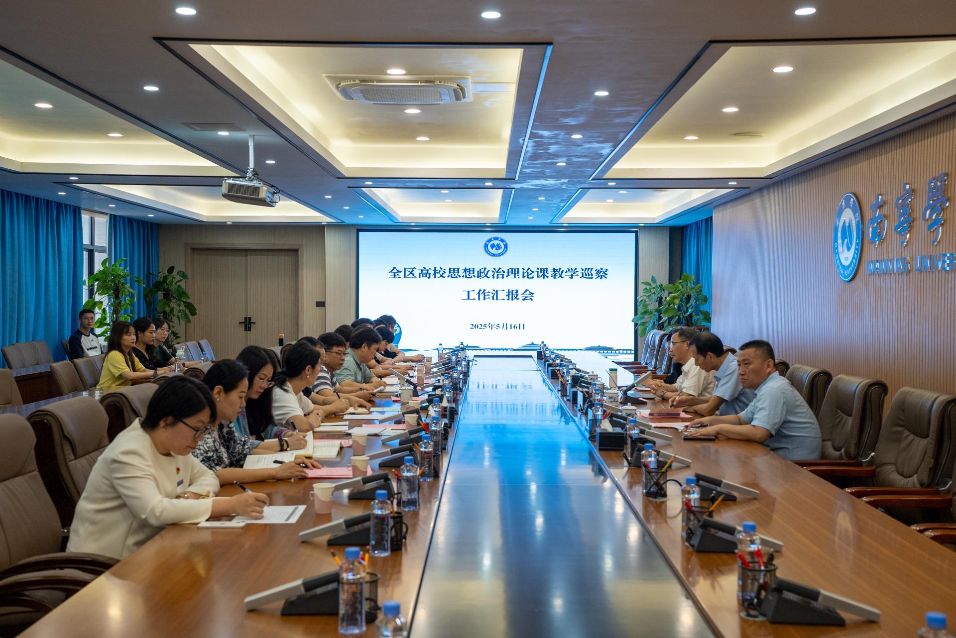 5月16日上午,全区高校思想政治理论课教学巡察组专家一行4人,在桂林旅游学院校长林春逸教授的带领下,到我校开展思想政治理论课教学专项巡察指导工作。巡察组成员包括南宁师范大学马克思主义学院李宝文教授、广西师范大学马克思主义学院邓小玲教授、桂林旅游学院马克思主义学院院长张雷教授。学校党委书记刘彪、副校长王宁章,以及相关职能部门领导、马克思主义学院领导班子成员、思政课教师代表以及学生代表参加了此次巡察工作。