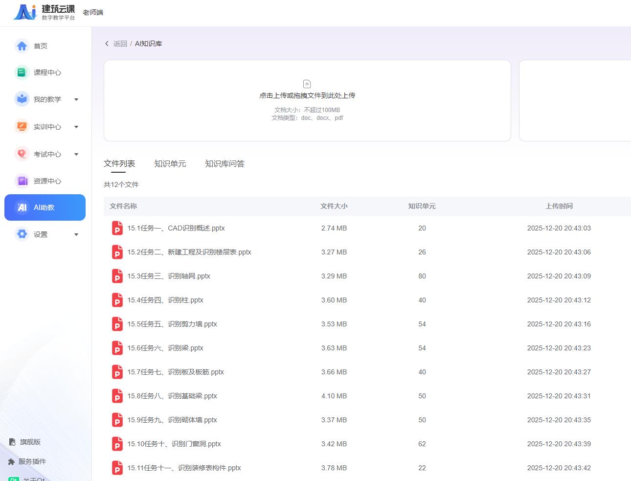 在延续“金课”建设与教学创新的成果基础上,课程团队进一步将改革深化至教学评价的核心环节。面对传统BIM教学考核效率低、反馈慢、标准不一等痛点,团队引入智能化平台,为教学评价装上“AI大脑”。“过去批改一个班的BIM作业,要花好几天仔细核对每个构件。”课程负责人介绍,“现在,AI评分系统只需几小时便能完成精准批阅,准确率超过98%,并可即时生成每位学生的个性化能力诊断报告。”这一变革将教师从重复性劳动中解放出来,使其更聚焦教学设计与知识更新,形成了“教学—评价—反馈—优化”的高效闭环。数据显示,新考核模式为每位教师每月平均节约8-10小时。