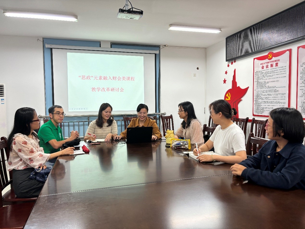 为全面贯彻落实“立德树人”的根本任务,增强专任教师“课程思政”的育人理念,充分发挥课堂育人的主渠道作用,在会计学教研室的组织下,《“思政”元素融入财会类课程的教学改革研究》教改团队于20231024日下午,在行政楼421开展了主题为“课程思政春风化雨 铸魂育人润物无声”的教学改革研讨会。参加研讨会的有教改项目团队成员和会计学教研室的部分老师,研讨会由教改项目负责人陈月玲老师主持。