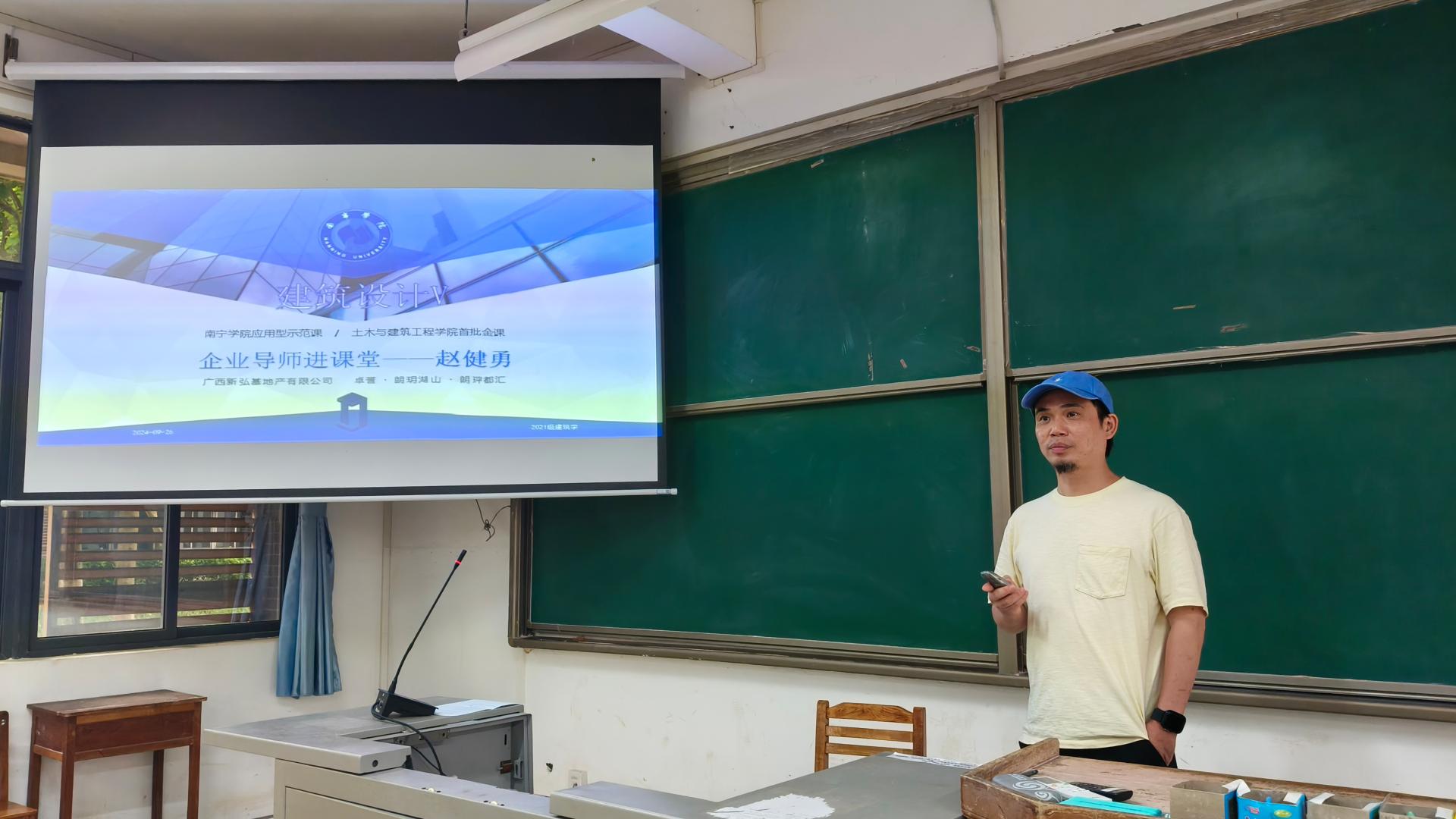9月26日下午,我校的校企合作签约企业——广西新弘基地产有限公司总经理赵健勇先生受邀到我校参与2021级建筑学专业核心课、Beat365中文官方网站应用型示范课《建筑设计V》课程的协同育人教学活动,活动在Beat365中文官方网站敷文园D106教室举行。