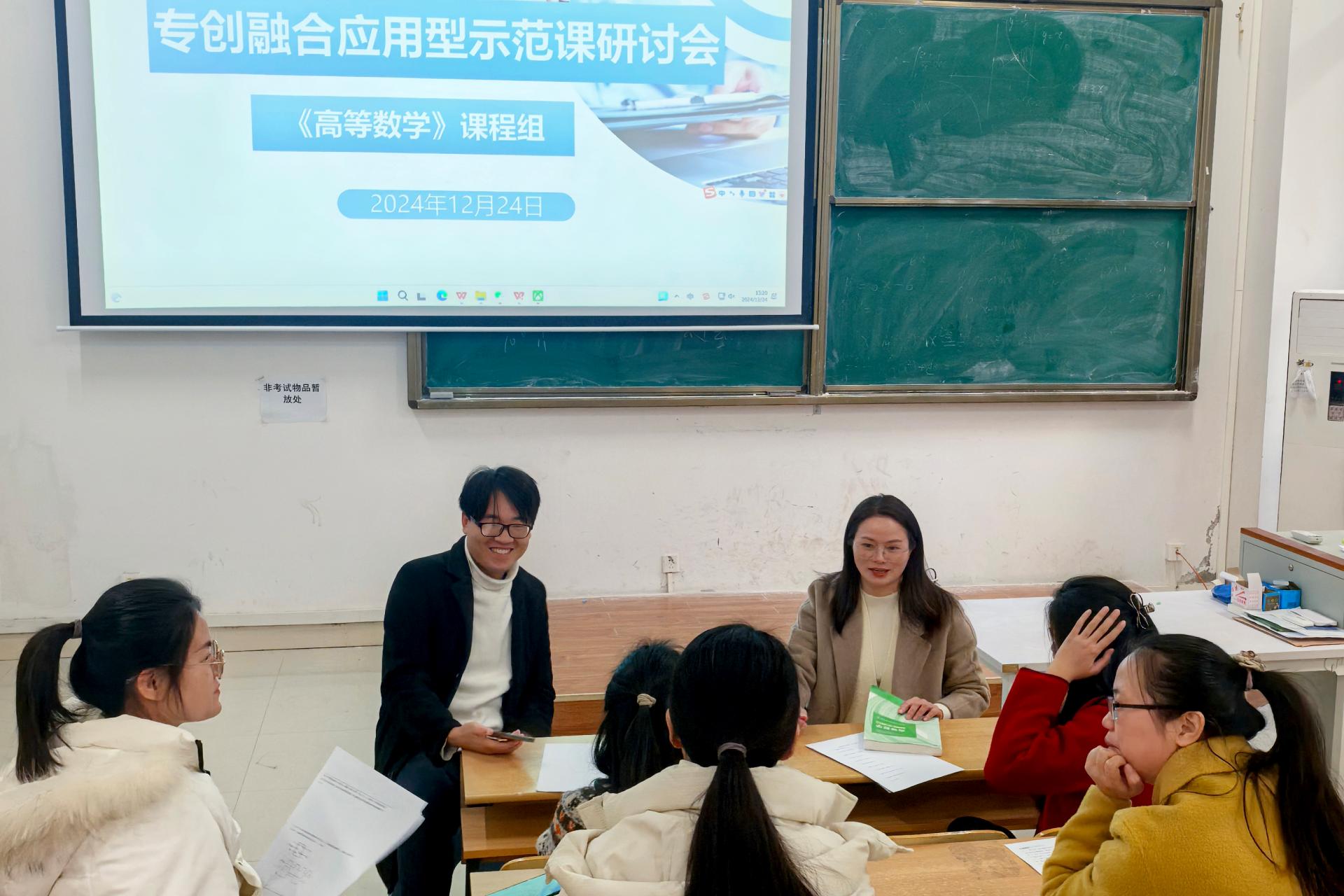 12月24日,一场聚焦专创融合的《高等数学》应用型示范课研讨会在我校智能楼102阶梯教室热烈召开。此次研讨会汇聚了苏连菊、吴英、杨迪、陈飞、吕宁、卢慧婷、袁卫峰等教学骨干,共同探索高等数学教学创新之路,为理工科人才培养注入新活力。