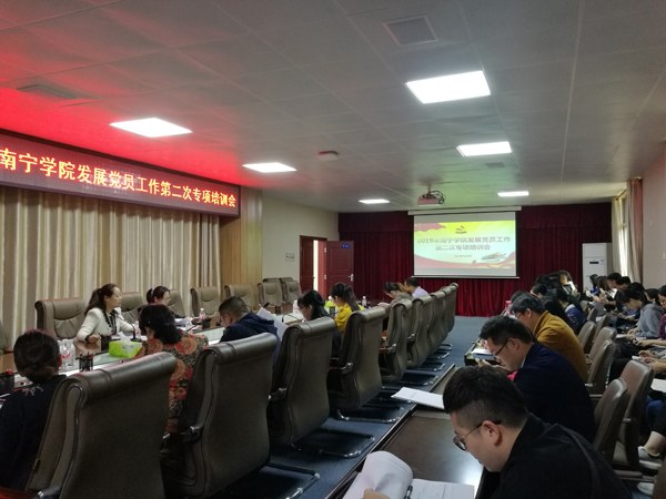 会上,党政办党务科科长杨艳就如何严格把关发展党员材料,规范党员发展程序等作了具体指导,重点围绕《广西发展党员工作手册》及学校在2019年发展党员工作中的具体步骤和详细内容进行讲解,对各阶段程序、时间节点、档案收集、材料规范的注意事项和常见问题进行了专题培训。