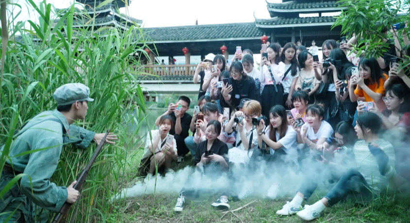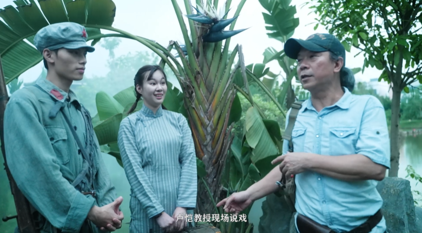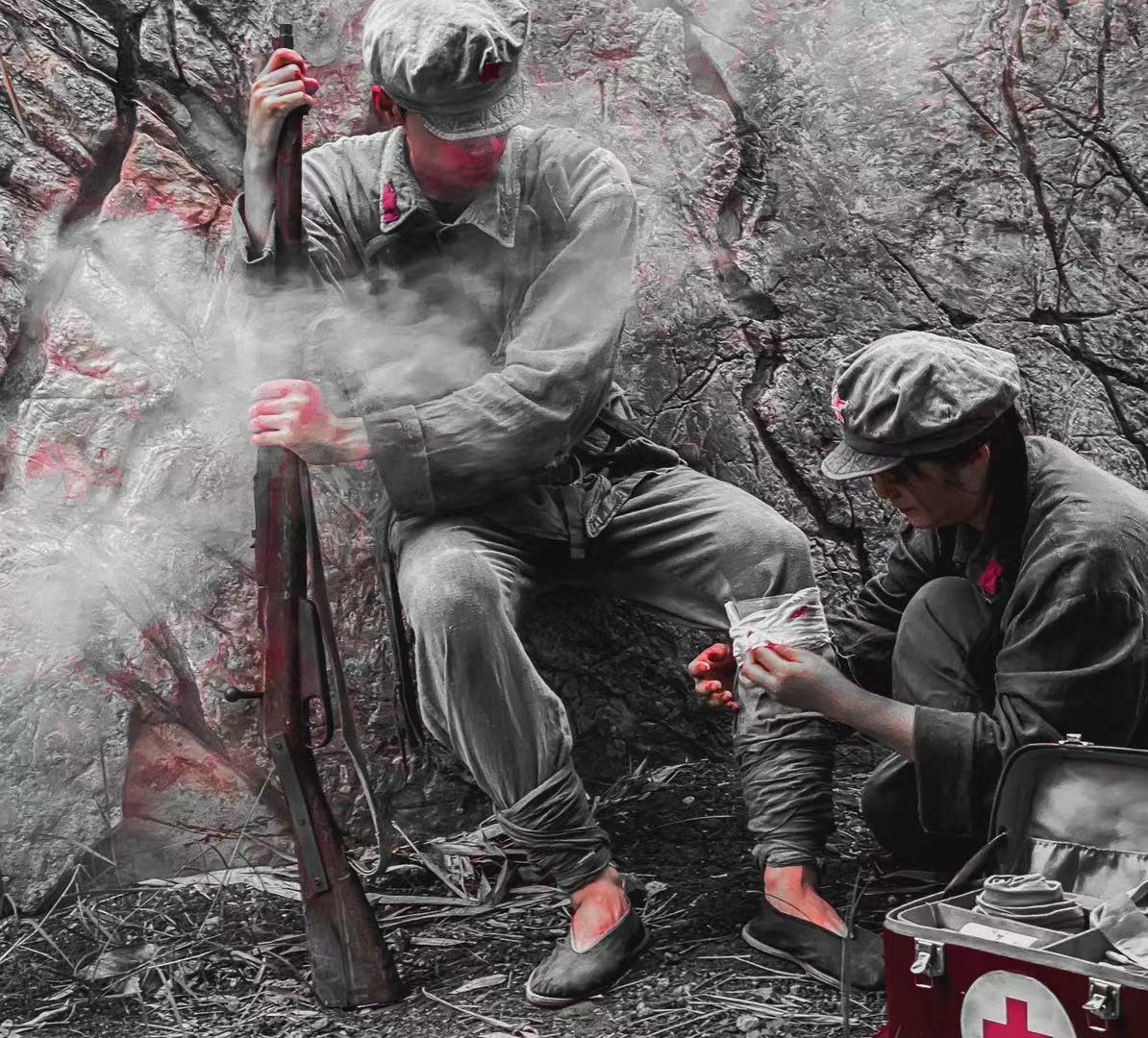 本次课程思政实践活动是落实《Beat365中文官方网站党史学习教育实施方案》工作部署的一次有效举措。宝书教授将党史学习教育思想政治教育元素融入到课程的教学实践环节,让学生运用所学知识进行红色主题摄影创作实现思想政治教育与专业教育的有机统一活动现场,学院学生扮演红军战士演绎抗战情景,充分调动了学生的学习积极性,宝书教授和郭家驯陈建飞老师现场指导摄影技巧。上课学生认真听讲,现学现用。