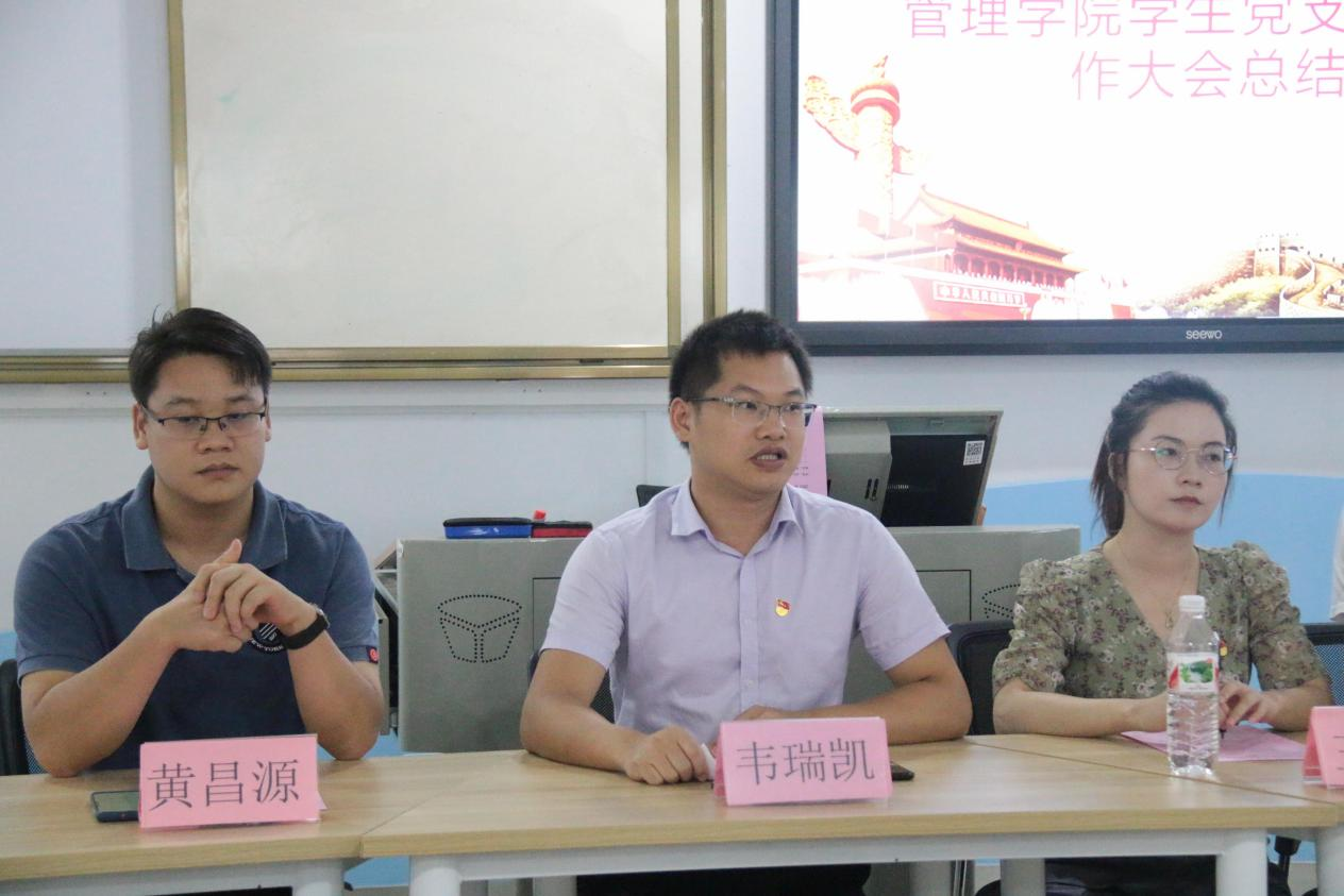 6月10日下午16:00,管理学院学生党支部在商科实训中心203召开了2021年春季学期预备党员转正大会,讨论了30名预备党员转正的事宜。转正大会由学生党员金以韵主持,学生党支部书记韦瑞凯老师、管理学院辅导员黄昌源老师、廖中瑾老师、玉露丹老师、苏贵福老师及全体在校学生党员参加会议。
