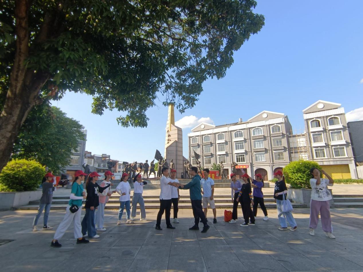其次,党史学习实践团寻访了红军广场,红军广场的雕塑是邓小平和张云逸
