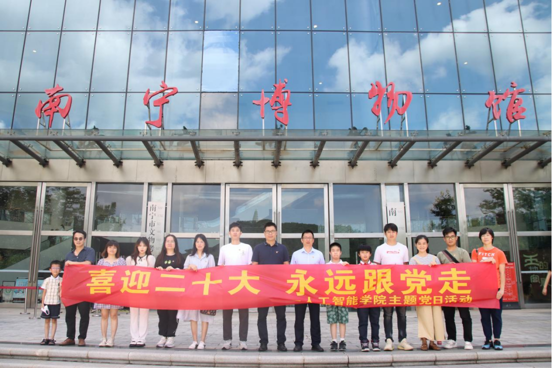 为庆祝中国共产党成立101周年,传承红色基因践行初心使命,进一步巩固拓展党史学习教育,7月1日,人工智能学院教工党支部“喜迎二十大,永远跟党走”为主题,前往南宁市博物馆开展七一主题党日活动,教工党支部书记刘泉生同志带领支部全体党员同志参加。