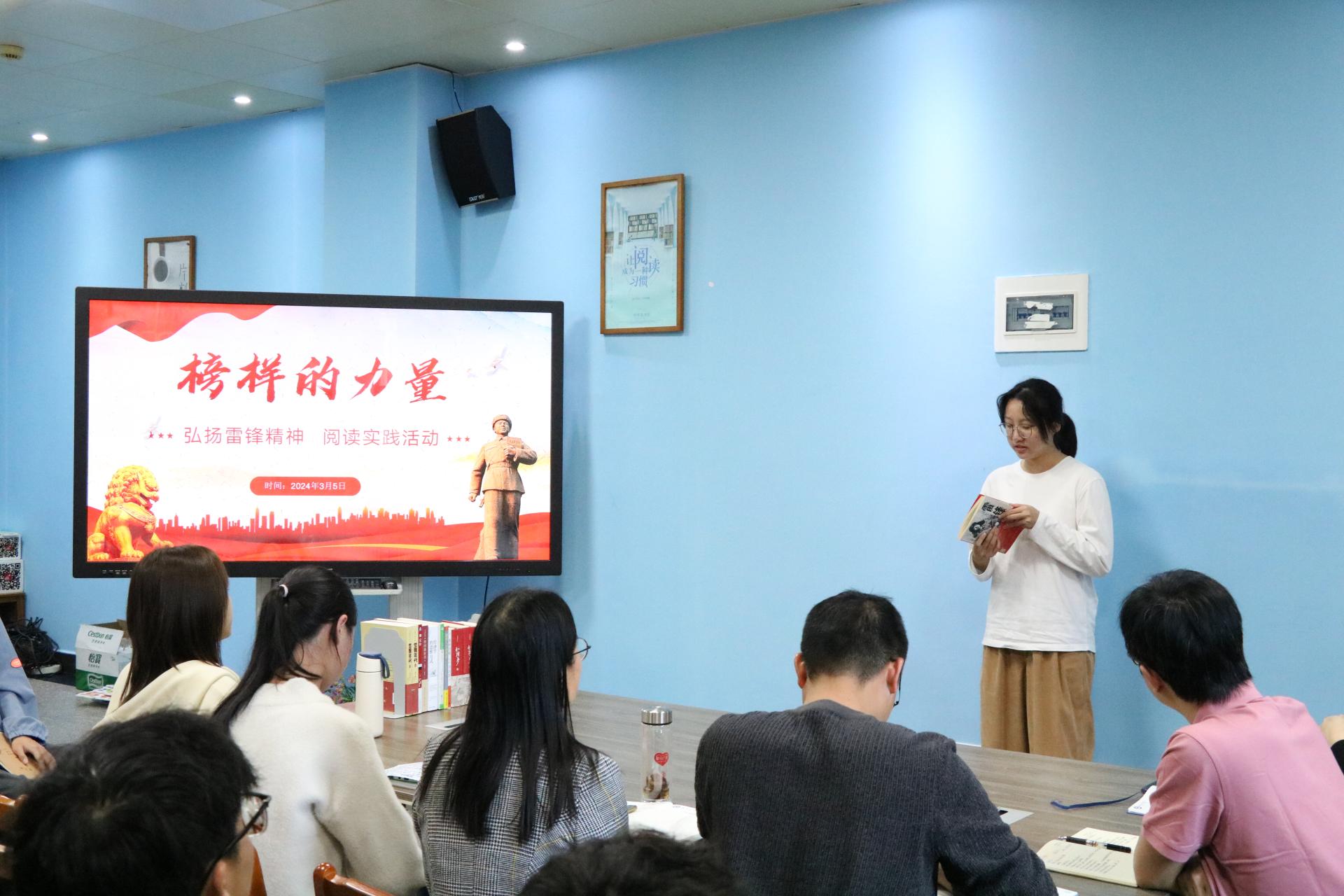 活动于3月5日在图书馆二楼阅读分享空间开展。活动伊始,主持人先用一段介绍雷锋同志生平事迹的视频引出主题。接着,图书馆党支部书记韦相晓带领大家深入学习雷锋精神,通过对雷锋简介、雷锋精神、如何践行雷锋精神三个方面的详细讲解,带领大家了解雷锋同志的感人事迹,领悟雷锋精神的主要内涵,思考新时代青年、共产党员如何践行雷锋精神。韦书记强调,新时代青年尤其是共产党员要深刻把握雷锋精神的时代内涵,要学习雷锋同志忠于党和人民、舍己为公、大公无私的奉献精神,立足本职、在平凡的工作中创造出不平凡业绩的“螺丝钉精神”;苦干实干、不计报酬、争做贡献的艰苦奋斗精神。在日常生活中弘扬雷锋精神,践行互助、互爱、友善的优良作风,让雷锋精神在新时代绽放更加璀璨的光芒。