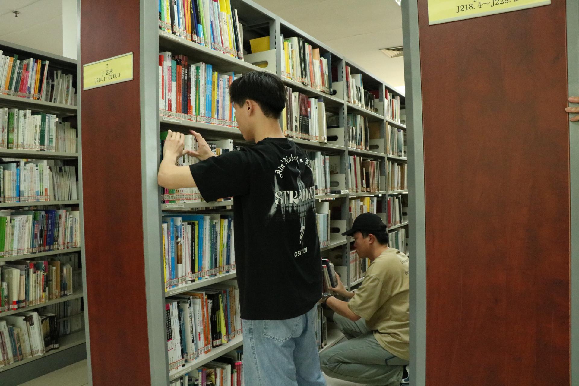 党员带头开展志愿服务书籍整架活动