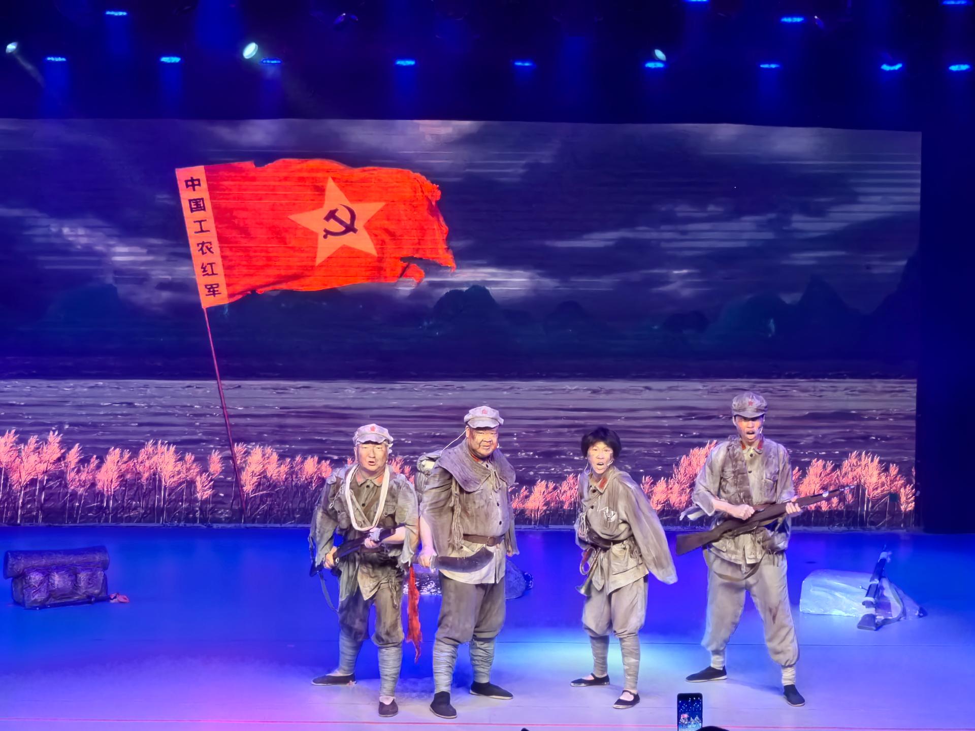 表演开始前,话剧导演首先介绍了这部红色话剧的灵感来源和创作初衷,然后随着灯光渐暗,大幕缓缓拉开,震撼人心的《湘江1934》正式开演。话剧以湘江战役为背景,围绕小红军张六娃和其他战友展开,从湘江战役中一场惨烈的战斗的一角出发,以小见大,折射出湘江战役的惨烈程度和工农红军英勇无畏的战斗精神。通过演员们生动的演绎和深情的叙述,将红军战士们面对敌人的围追堵截时,依然顶着炮火勇往直前的英勇形象展现得淋漓尽致。观众们仿佛穿越时空,亲历了那场关系着红军生死存亡的一战。湘江战役中革命先烈们无私无畏的英雄气概、视死如归的斗争信念、勇于反思纠错的担当,都让在场党员和入党积极分子感到深深震撼!