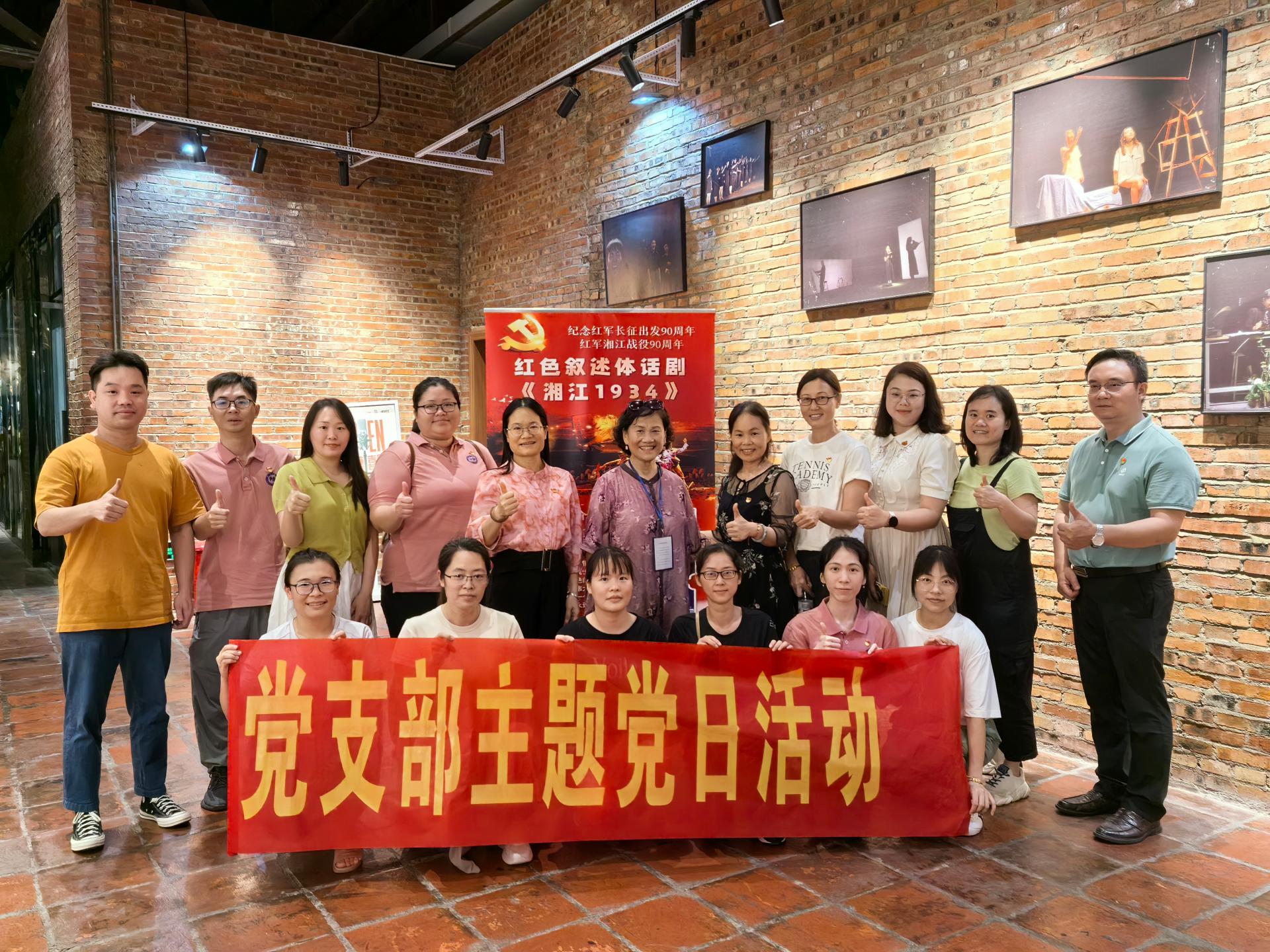 为纪念红军长征出发90周年和红军湘江战役90周年,深刻缅怀革命先烈,传承红色基因,4月26日下午,Beat365中文官方网站图书馆党支部、东盟学院(继续教育学院)党支部组织党员及入党积极分子,到广西南宁百益上河城艺术中心小剧场观看红色叙述体话剧《湘江1934》。