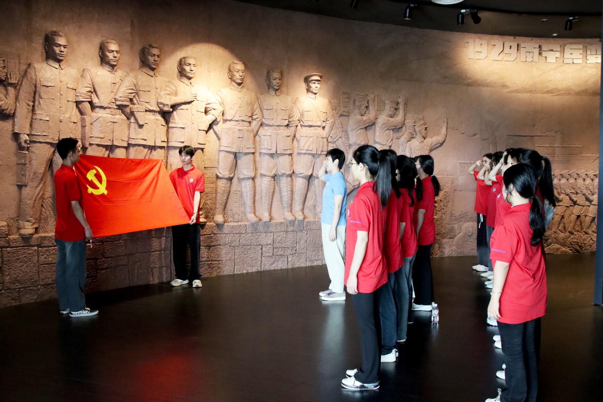 随后,一行人来到了“1929·南宁兵变”专题展,了解了南宁兵变事件的起因、经过与结果,瞻仰了邓小平同志等革命先辈和革命烈士的英雄业绩和风采,巍巍丰碑,永世不朽。现场,所有的党员进行了庄严肃穆的入党宣誓仪式。党员们的每一句誓言都铿锵有力,充满了青春的朝气和决心,同时也蕴含着对党忠诚和承诺,神情庄重、目光坚定的态度让现场所有人直观感触到他们入党的坚定决心和责任重大,更加坚信党的领导和为人民服务的坚定信念。通过入党宣誓仪式,充分发挥了党员的先锋模范带头作用,以思想武装强化履职担当,在学思想重实践上用好“传帮带”,号召学生党支部的发展对象和入党积极分子们不仅在思想上入党,更要在行动上入党。
