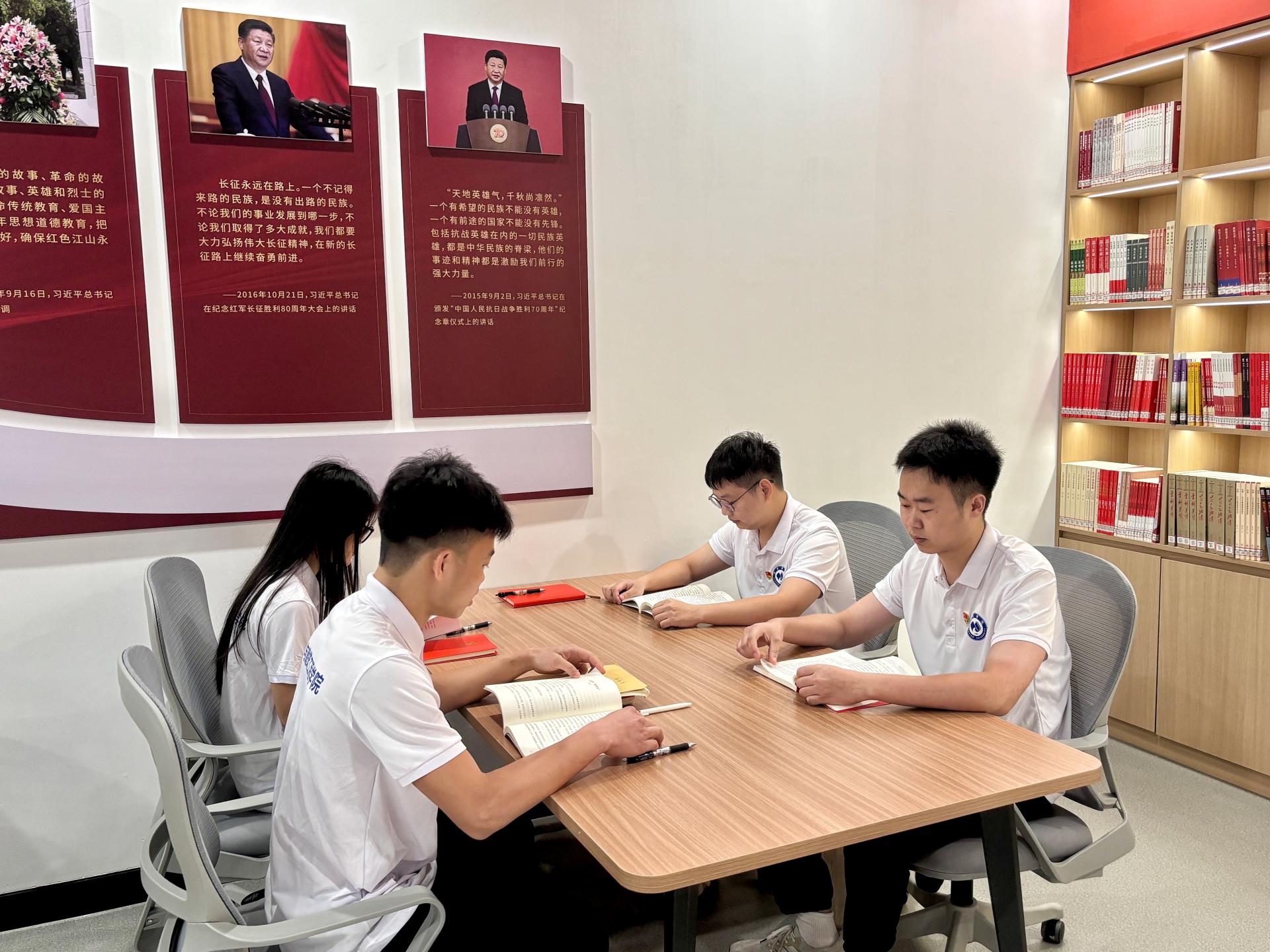 参观完毕英雄精神传承体验馆,图书馆党支部的党员同志们及土木与建筑工程学院的学生党员来到英雄书屋,一同进行沉浸式阅读。在阅读过程中,师生身临其境地体验了中国共产党发展历程,深刻感受到了红色革命文化的深厚底蕴。