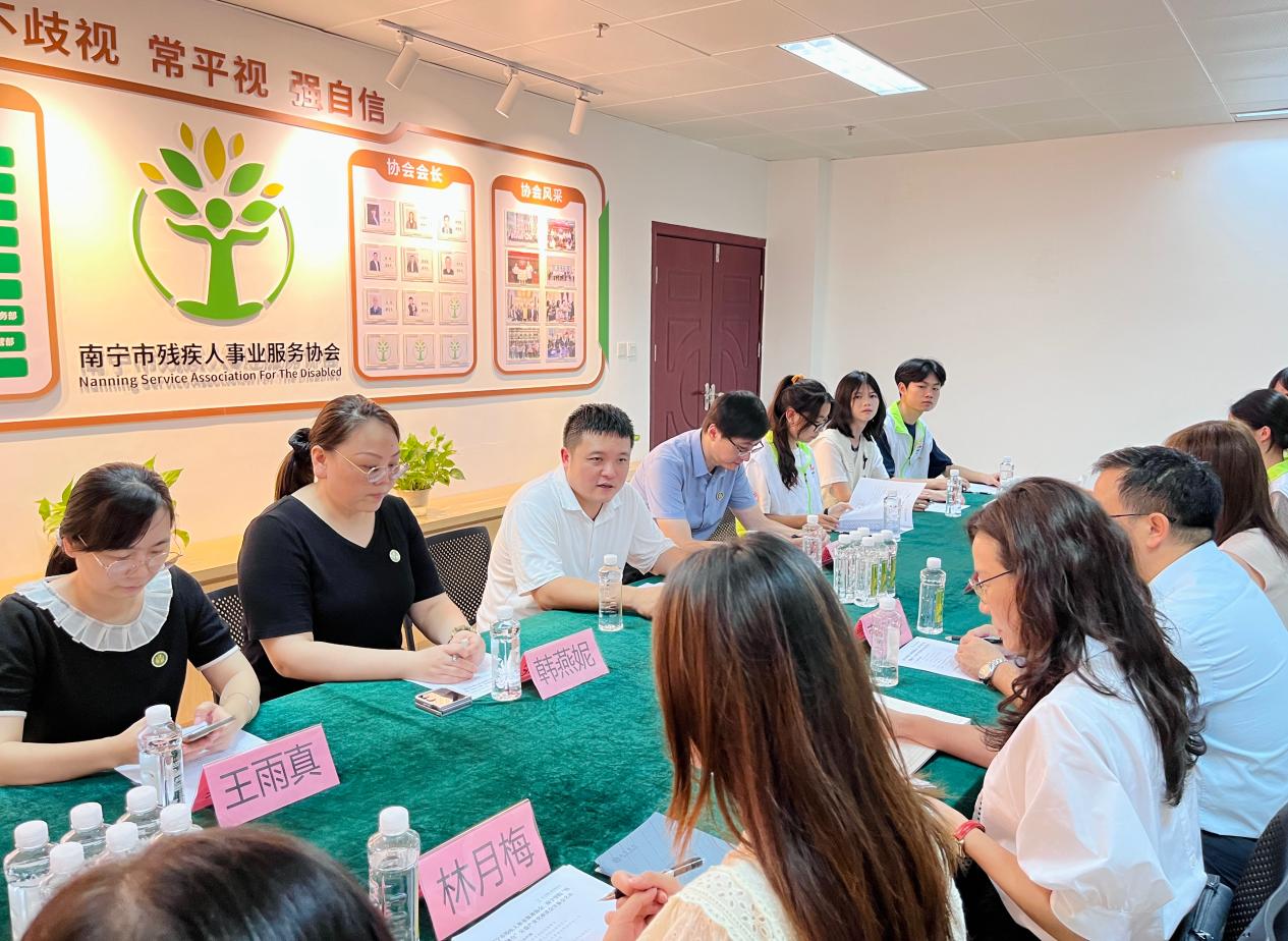为探索“残健融合”的可持续发展路径,以公益产业化赋能特殊群体美好生活,7月9日下午,商学院党委书记蒙永亨率队,携王馨敏博士、三下乡团队指导老师项群娟和林月梅以及“回声”特殊儿童关爱服务团全体成员,前往南宁市残疾人活动中心开展走访调研。