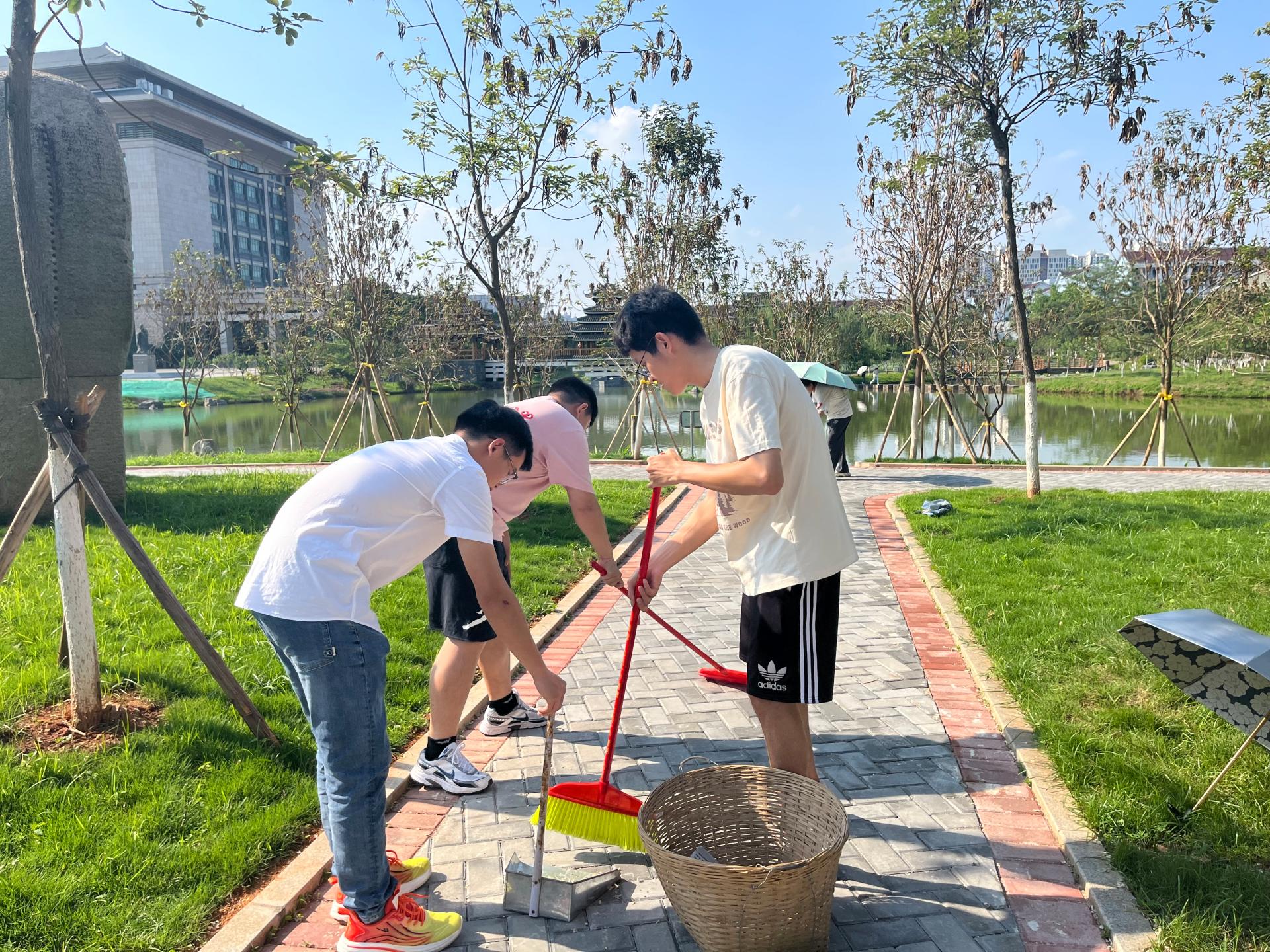 学生在烈日下开展校园清洁