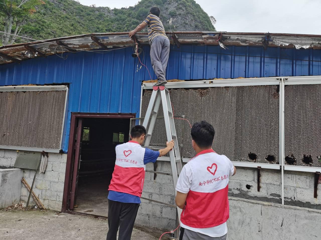 促进团成员帮助村民修缮鸡棚