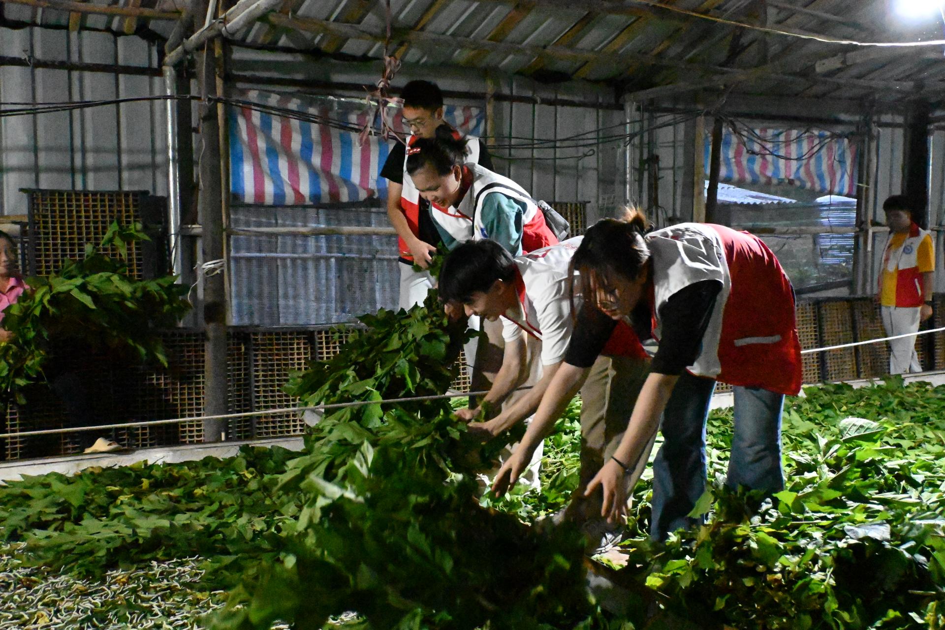 促进团成员体验喂蚕