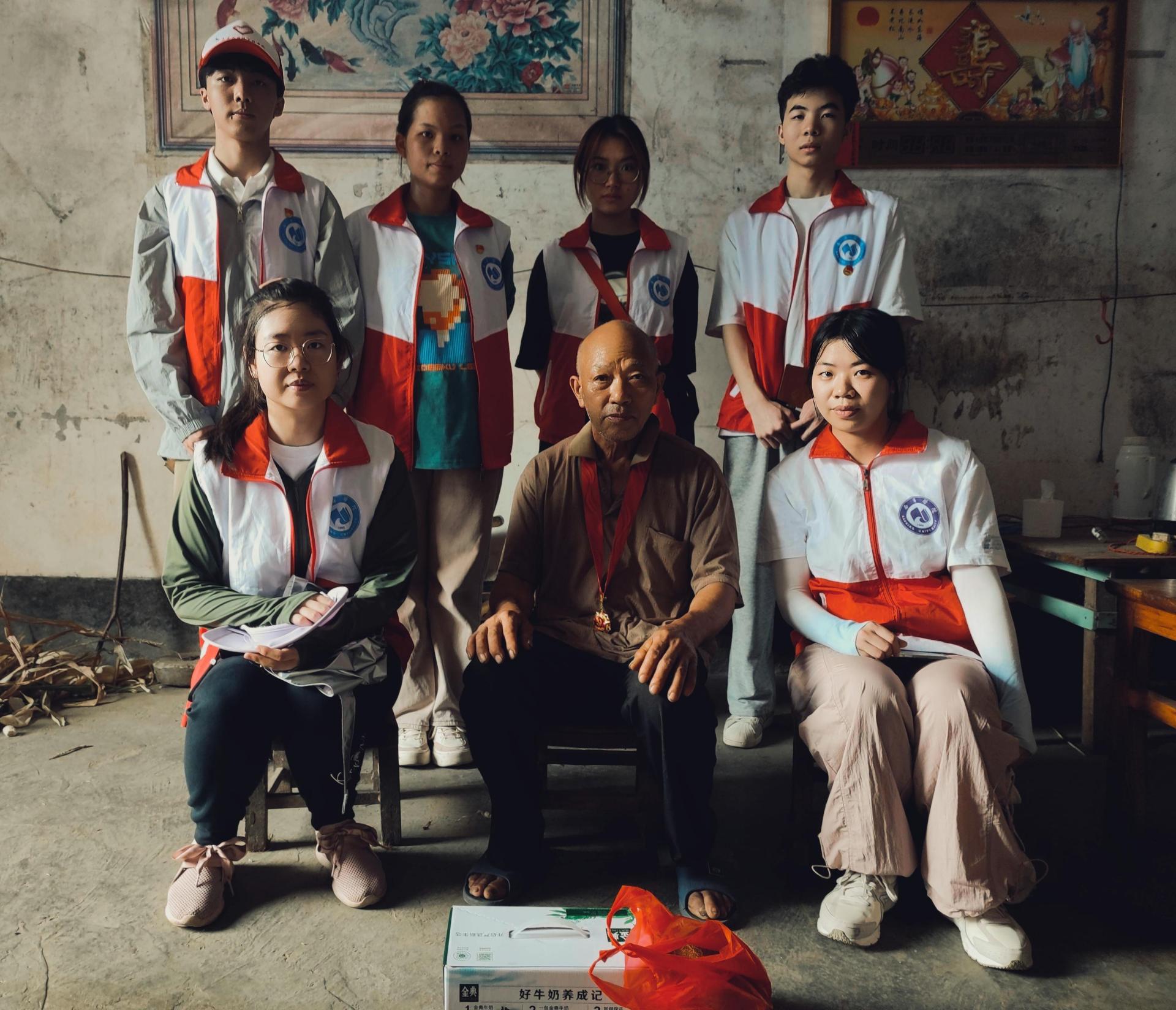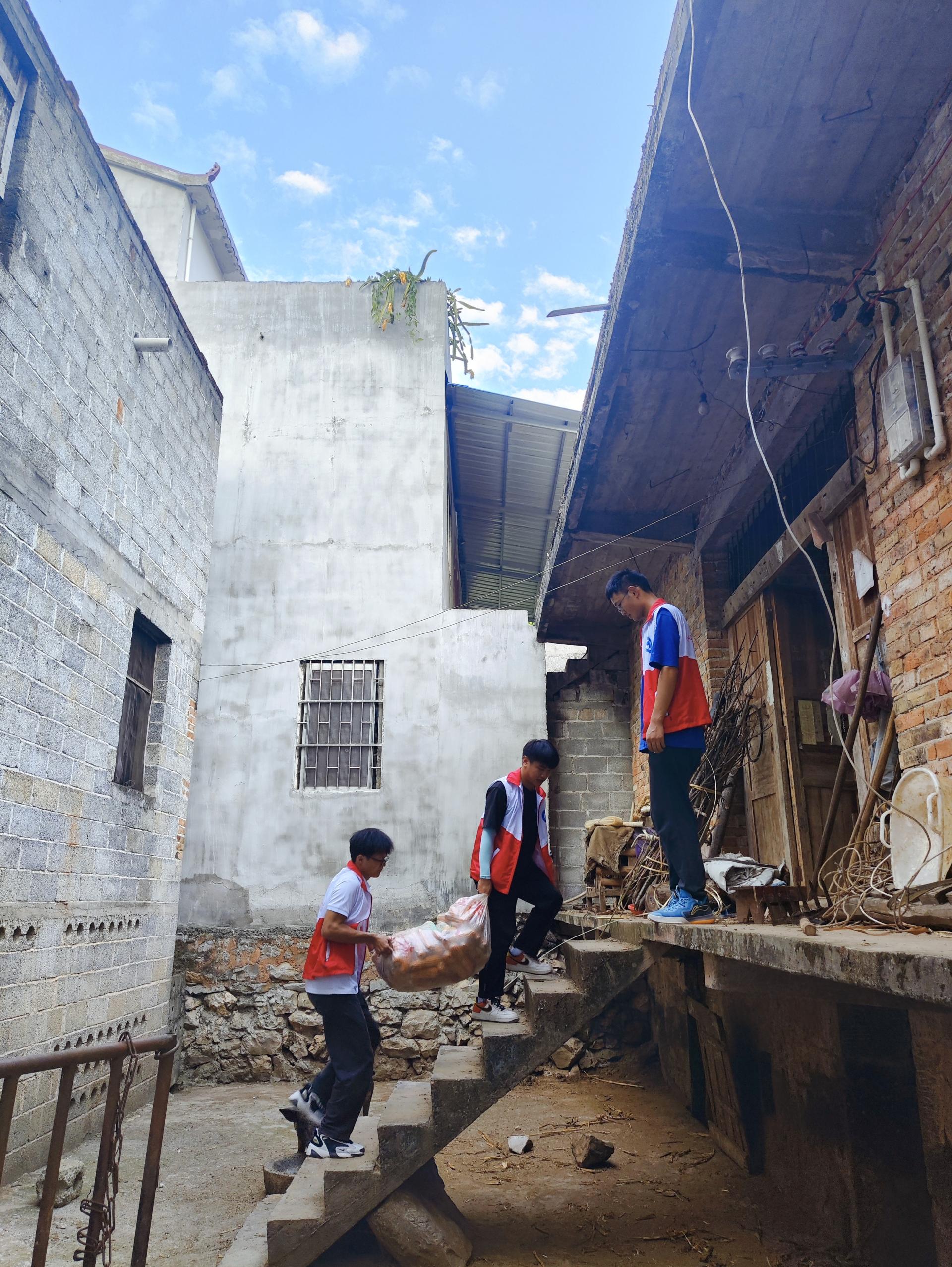 促进团成员们帮助村里的老人将玉米送回家