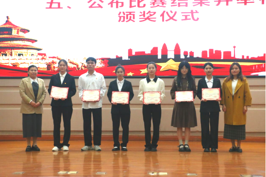 学院团委书记韦丹为获得三等奖的选手颁奖