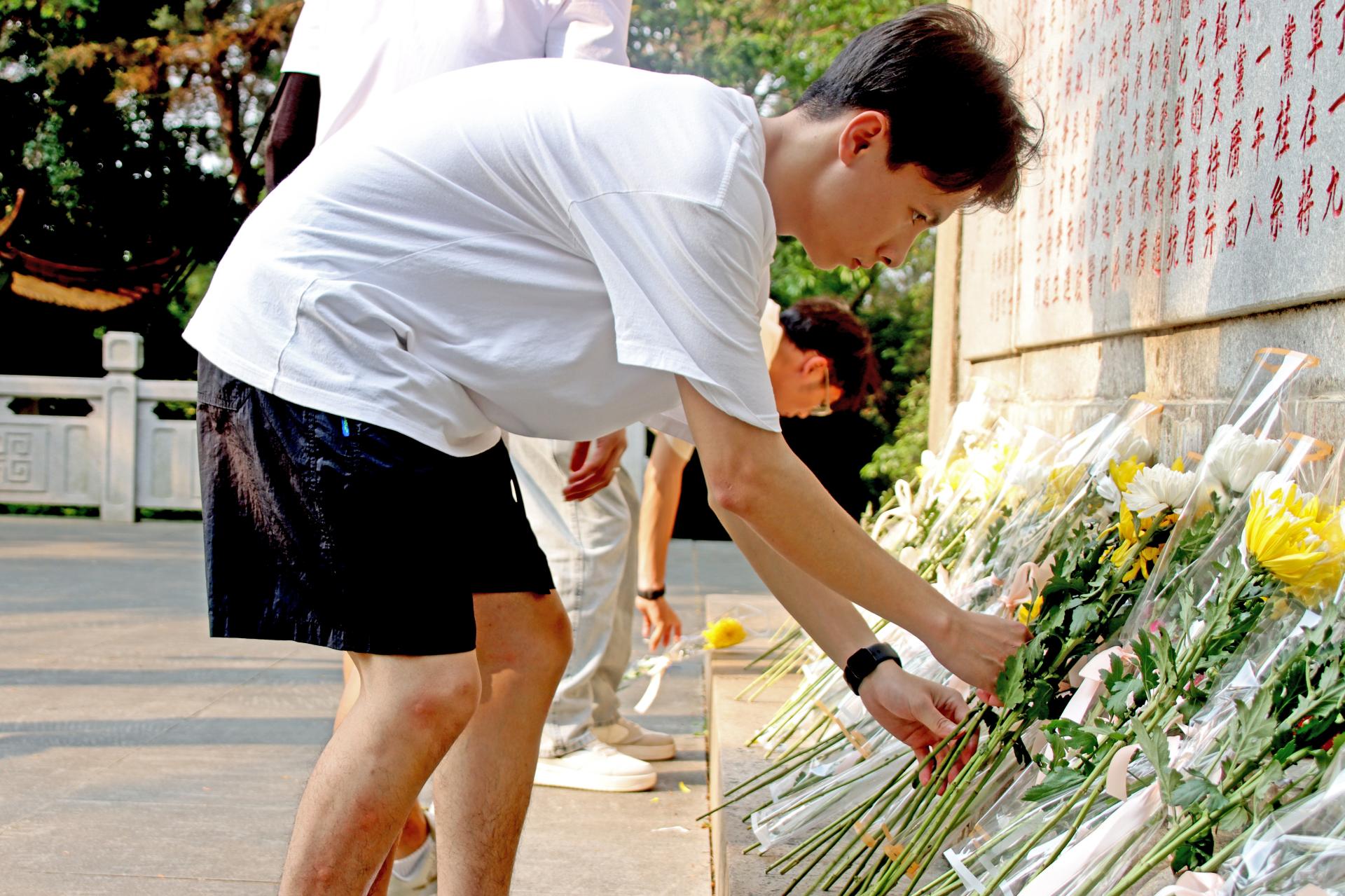 活动现场,全体师生面向纪念碑庄严肃立,一同奏唱国歌《义勇军进行曲》。随后,同学们在纪念碑前庄重地默哀,并由学生代表芮炳楠宣读祭文。师生还依次向革命烈士献花,瞻仰革命烈士纪念碑,缅怀先烈丰功伟绩,弘扬伟大革命精神,坚定理想信念。
