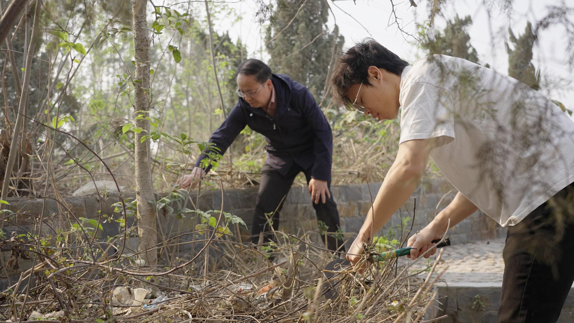 师生为“甘棠八百抗日烈士纪念陵园”清理杂草