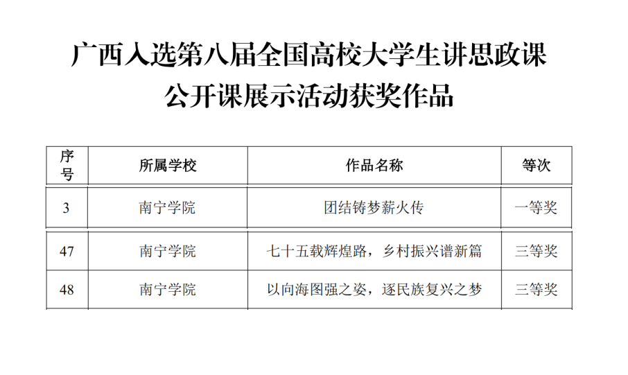 本次全国高校大学生讲思政课公开课展示活动共吸引了来自1339所高校的5007部优秀作品参与角逐。我校作品《团结铸梦薪火传—探寻壮乡民族团结的文化根脉》荣获国赛一等奖,《七十五载辉煌路,乡村振兴谱新篇》和《以向海图强之姿 ,逐民族复兴之梦》荣获国赛三等奖,三部作品在B站点击量已突破10万次,受到了广泛关注与好评。