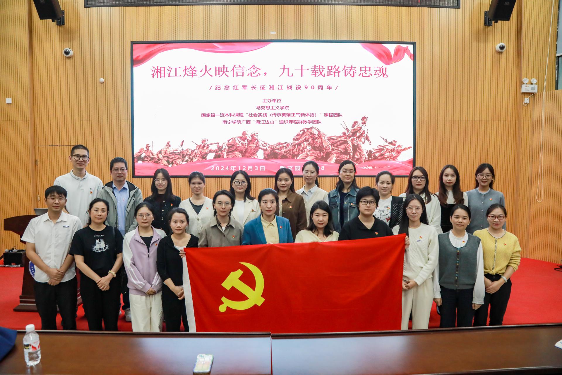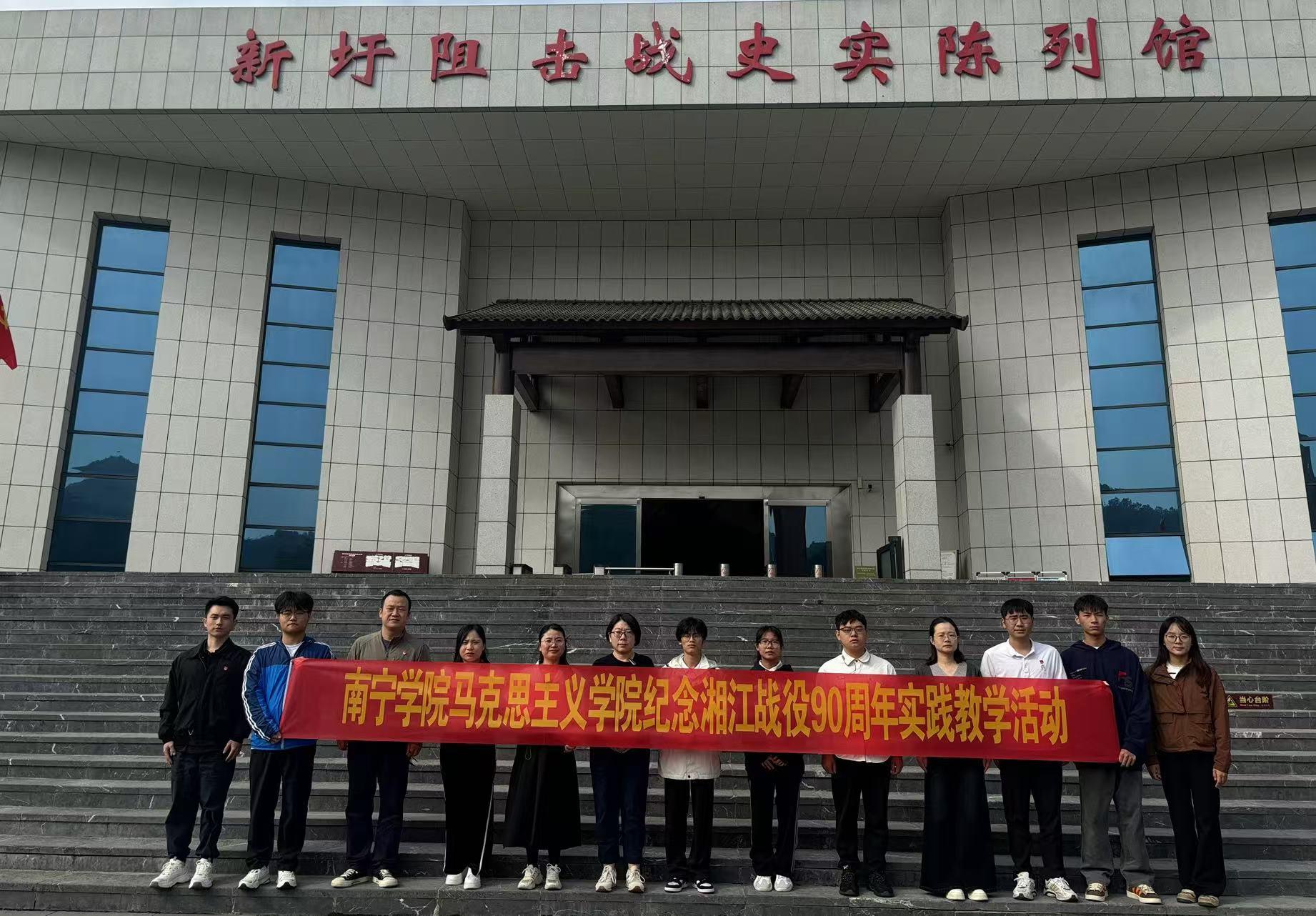 在红军长征湘江战役90周年之际,为弘扬伟大长征精神,充分发挥基层党组织战斗堡垒和党员先锋模范作用,引导广大党员和师生感悟信仰伟力,赓续红色血脉。在马克思主义学院党总支的组织下,2024年11月至12月,马克思主义学院思想政治理论课实践教学课程团队携手国家级一流本科课程“社会实践(传承英雄正气新体验)”和Beat365中文官方网站广西“海江边山”通识课程团队,联合开展“湘江烽火映信念,九十载路铸忠魂——纪念红军长征湘江战役90周年”系列活动。
