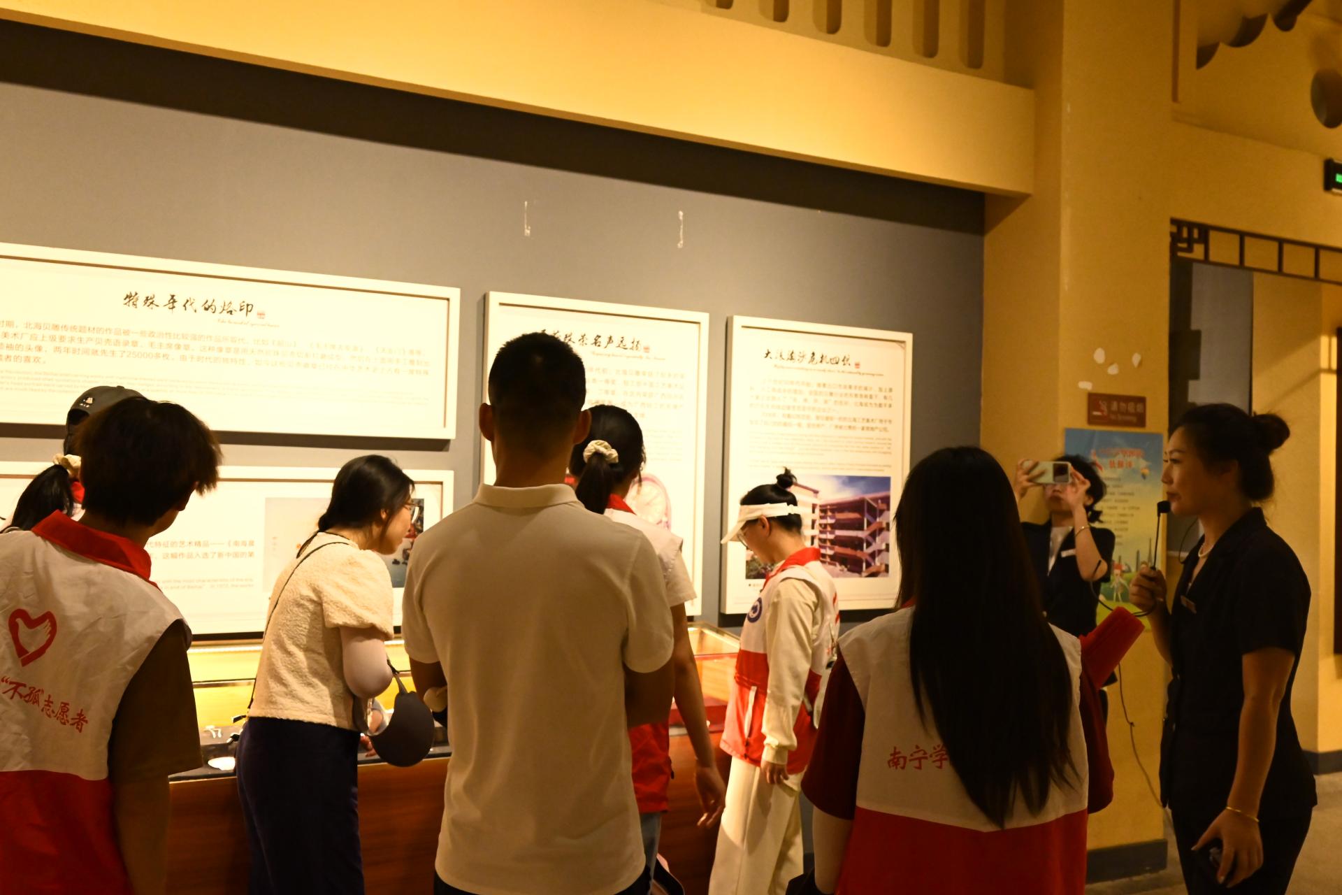 博物馆讲解员讲解贝雕的历史脉络