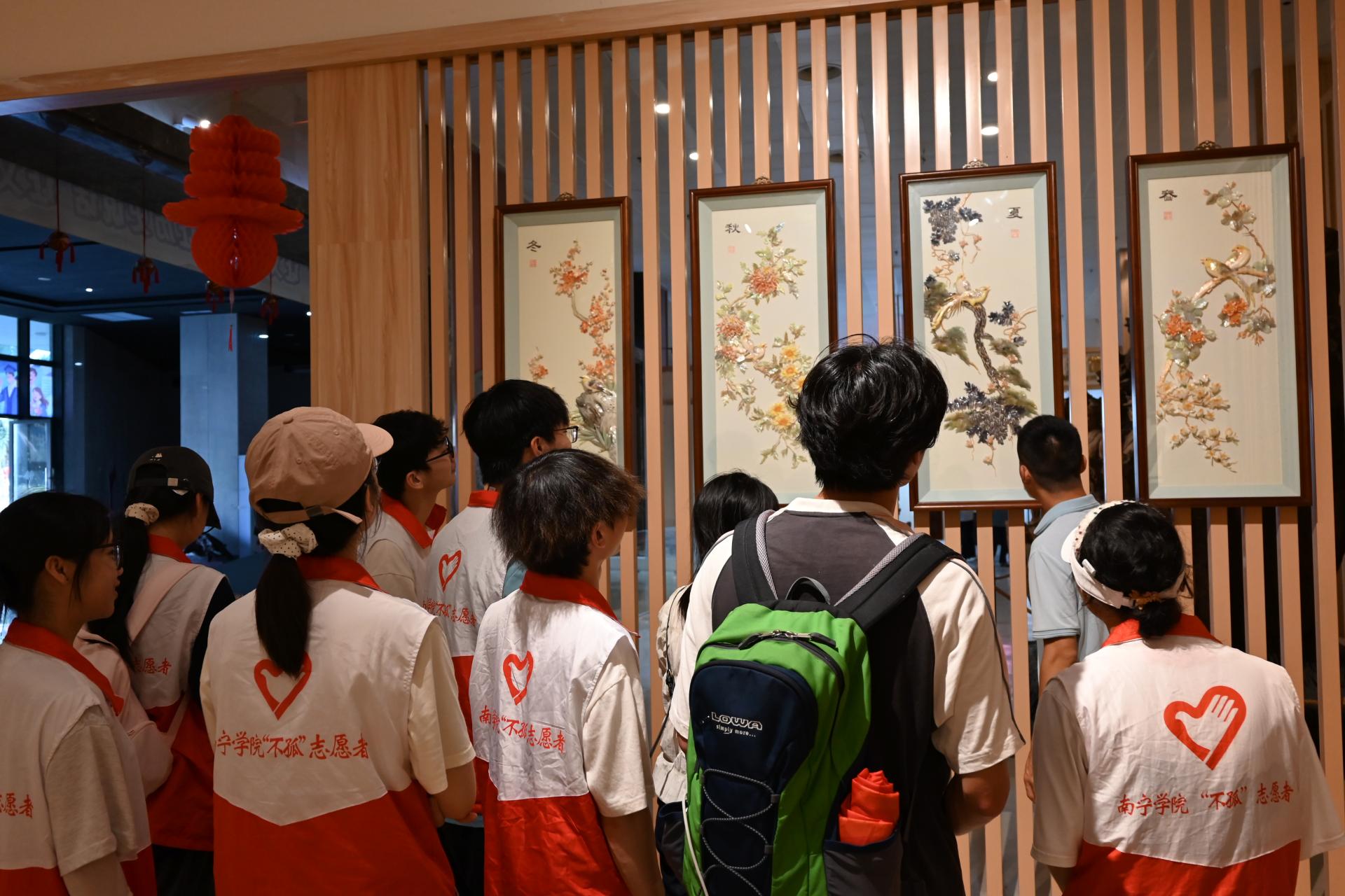实践团成员观摩贝雕作品