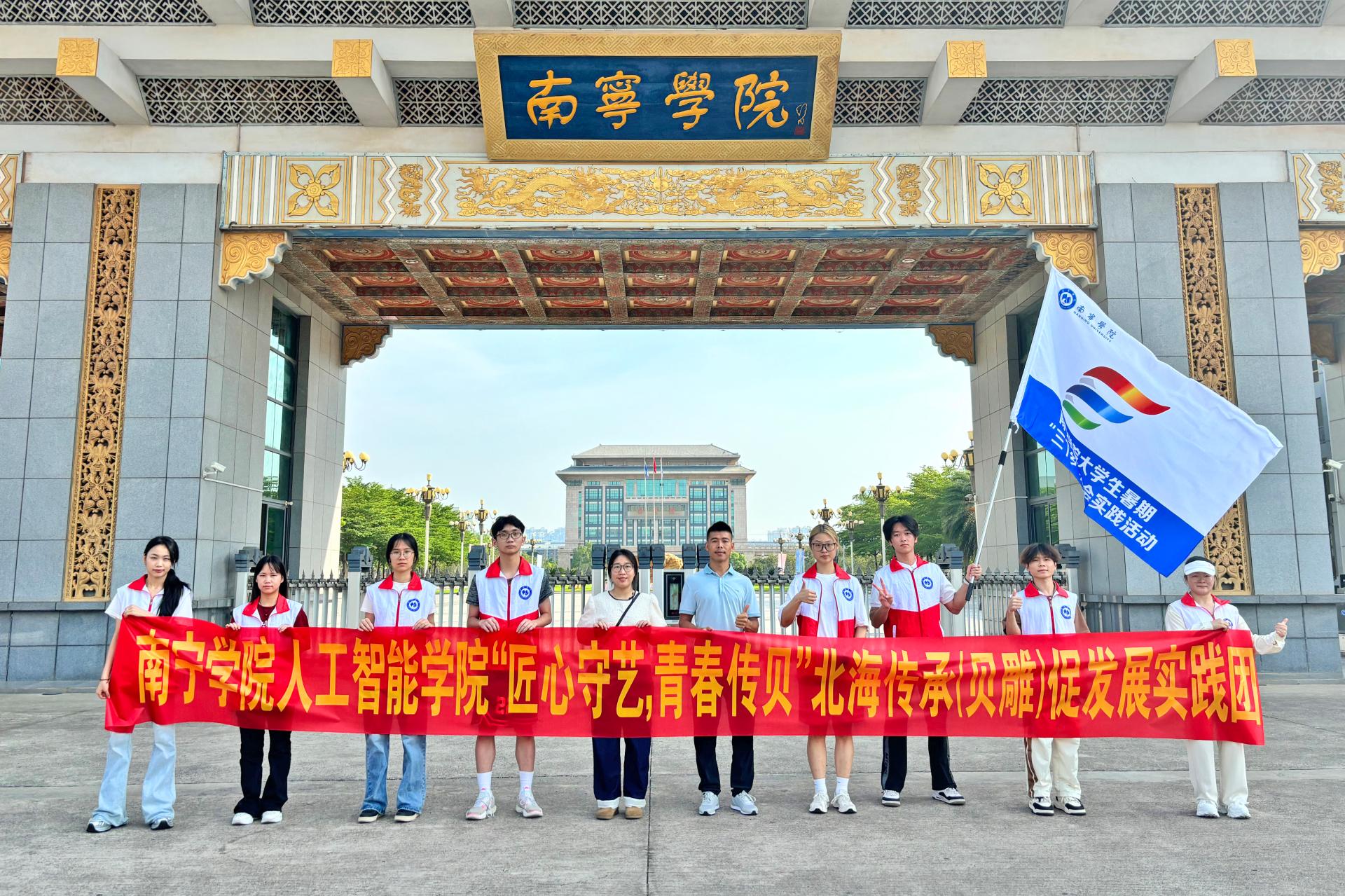 7月7日上午,人工智能学院“匠心守艺,青春传贝”实践团成员在学校南门广场整装集结,怀揣着对非遗文化的敬畏与热忱,奔赴北海贝雕文化传承地开启一场意义非凡的贝雕文化传承实践征程。此次实践活动旨在以贝雕为纽带,深度融合人工智能专业优势,探索非遗传承新路径,为千年贝雕技艺注入青春活力。