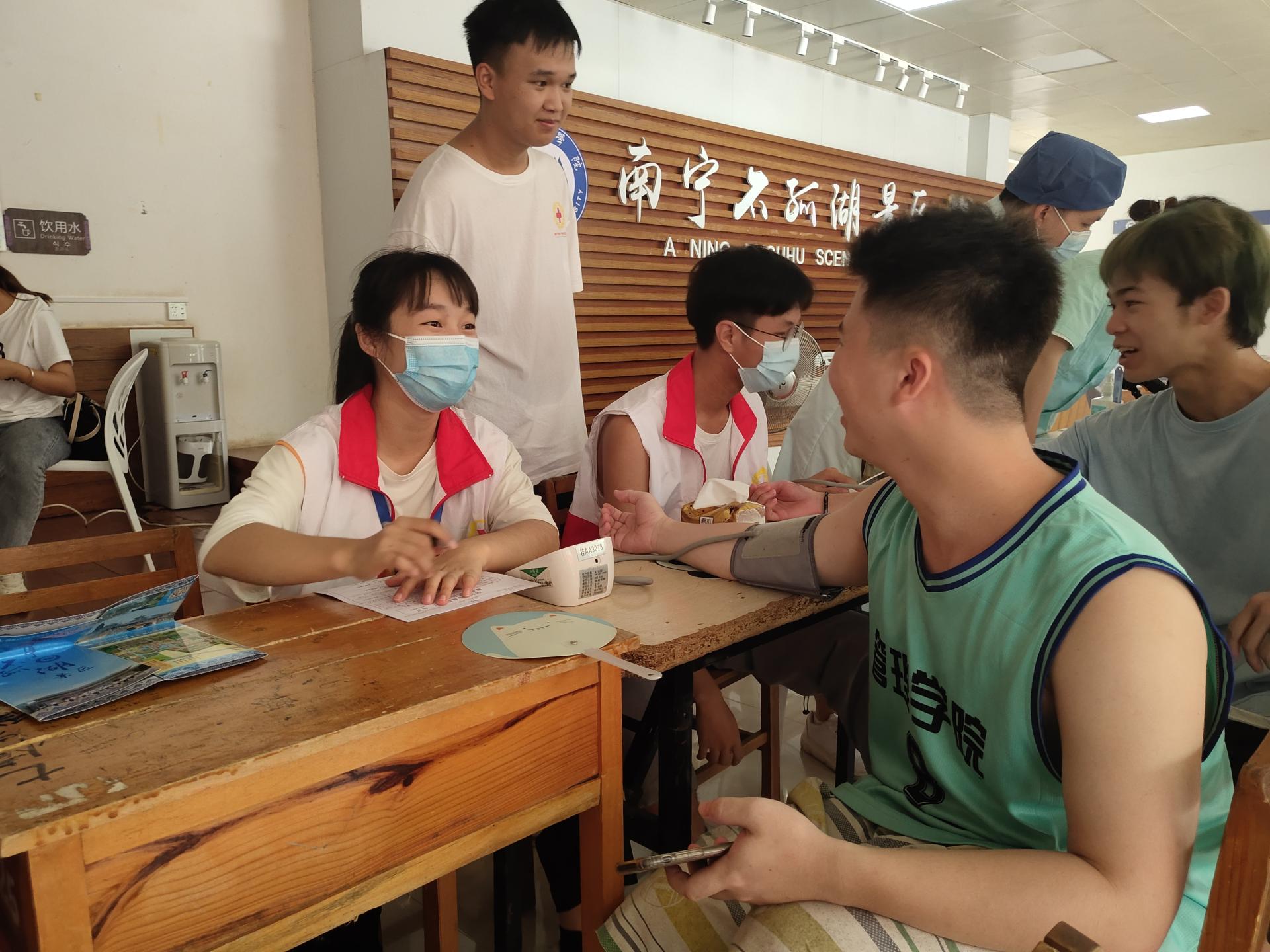 百年华诞,热血激昂,爱心涌动。为进一步弘扬“奉献、友爱、互助、进步”的志愿精神,用实际行动献礼建党百年6月27日至28日,由南宁中心血站、共青团Beat365中文官方网站委员会主办,Beat365中文官方网站学生社团联合会Beat365中文官方网站红十字会学生分会承办的“捐献青春热血,献礼建党百年“主题无偿献血活动在学校活动中心一楼举行。