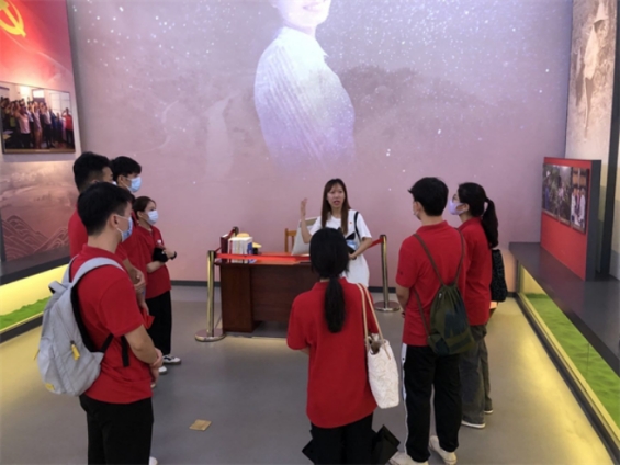 纪念馆大门四根粗大圆柱稳稳地支撑着皇冠形的外廊,象征着百色人民顶天立地、气壮山河、砥柱中流的气魄。大门两侧的浮雕再现了当年武装斗争的场面。来到序幕厅,正壁是“百色起义”汉白玉大浮雕,以磅礴的气势,生动地再现了当年百色起义波澜壮阔的场面。每个展览物件背后都有一个动人的革命故事,实践团的成员们在解说员娓娓道来的解说词中,仿佛看到了当年的革命先辈们不惧艰苦,为了推翻压在人民头上的三座“大山”,投身于实现革命理想之中的场景。这次参观纪念馆,加深了实践团成员们的爱国主义情怀,增强了实践团成员们强国的信念,要用实际行动将红色基因传承下去的决心。