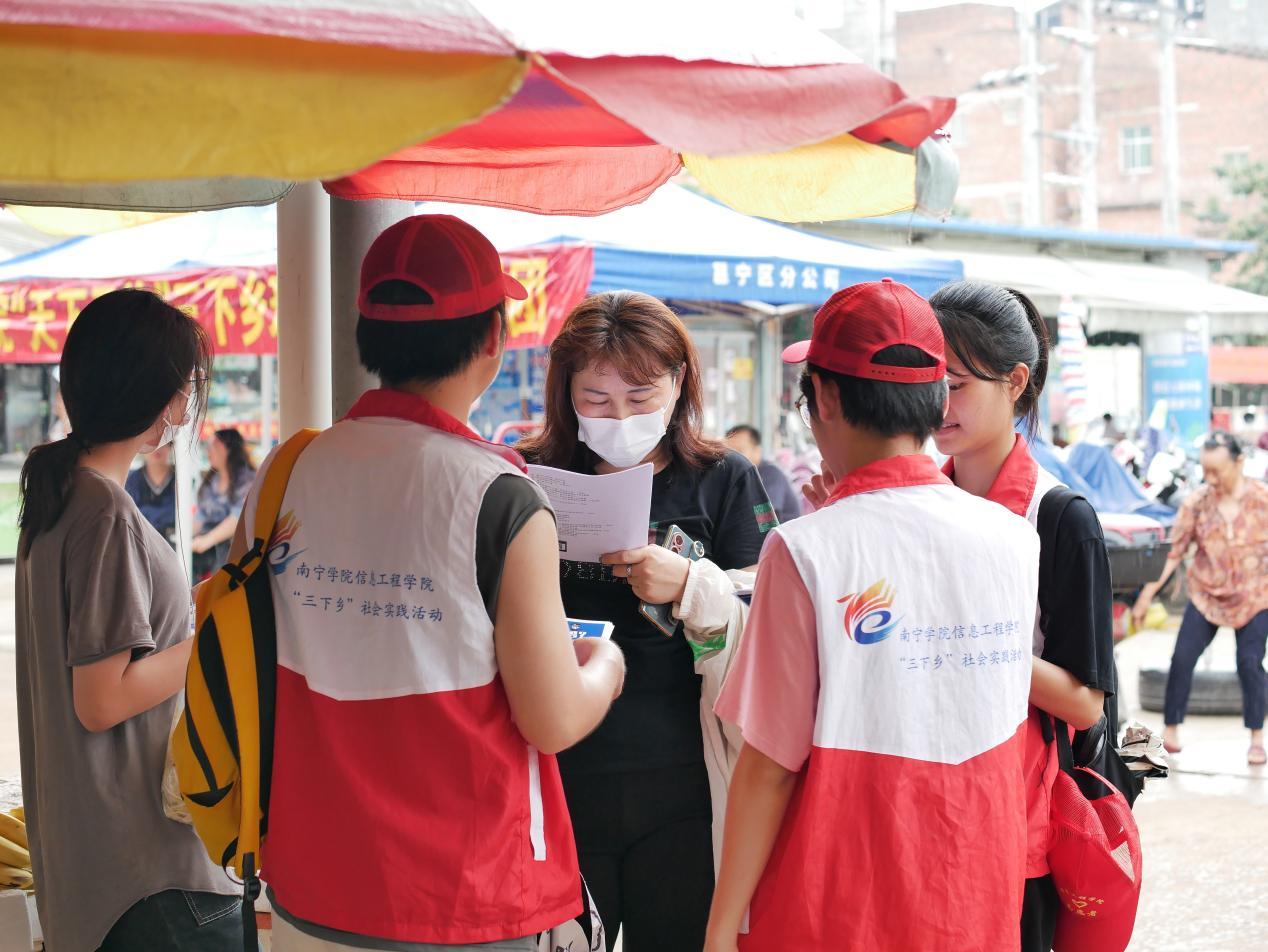 为切实提高居民群众识骗防骗意识,有效遏制电信网络诈骗案件的高发势头,减少人民群众财产损失,积极采取多项措施持续发力,Beat365中文官方网站“天下无诈”三下乡理论宣传实践团在龙象社区掀起反诈宣传新高潮。来到龙象社区,首先在龙岗龙福农贸市场设立反诈宣传活动点,通过现场讲解、悬挂横幅和发放宣传资料等方式,针对电信网络诈骗常识向群众进行了耐心的讲解,提醒群众保持清醒的头脑,不贪图小利,不轻信他人谎言,做到不听、不信、不转账。实践团成员通过进街入户,以“面对面、一对一”的形式,了解社区居民的防诈骗意识。实践团成员指导群众下载安装“国家反诈中心”APP,向临街商户和居民耐心解释安装注册国家反诈中心APP的重要意义,并详细讲解国家反诈中心APP的注册、使用方法及APP相关功能,提高群众的反诈意识。截止目前,宣传团共计走访群众300人次,临街商户50余户,发放宣传资料、调查问卷500余份。