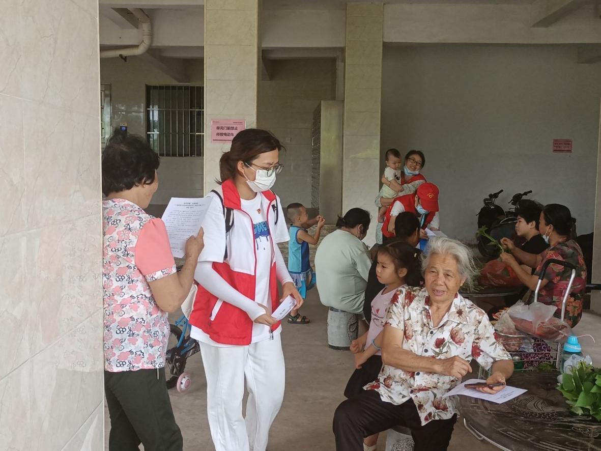 反诈实践团成员关心老年人身体健康,了解是否知晓反诈知识