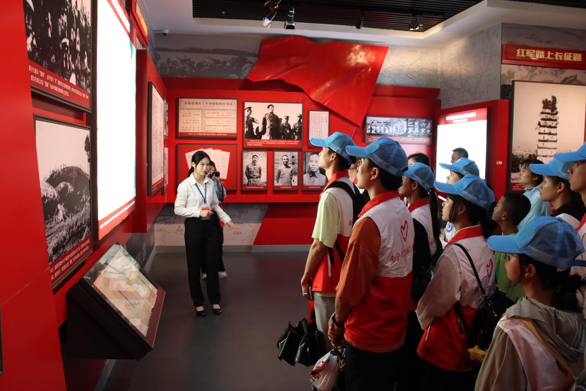 “青山埋忠骨,史册载功勋”。在纪念馆,服务团的同学们们跟随着讲解员一同踏上一段回望红军长征的旅程。透过一件件文物,一张张图片,一个个雕塑以及生动的复原场景,将湘江战役的惨烈景象呈现在同学们眼前,革命先烈血战湘江、四渡赤水、飞夺泸定桥、爬雪山、过草地等场景再现,一切仿佛历历在目,让服务团的同学们切身感受到红军战士坚定信念、自强不息、英勇顽强的斗争精神。
