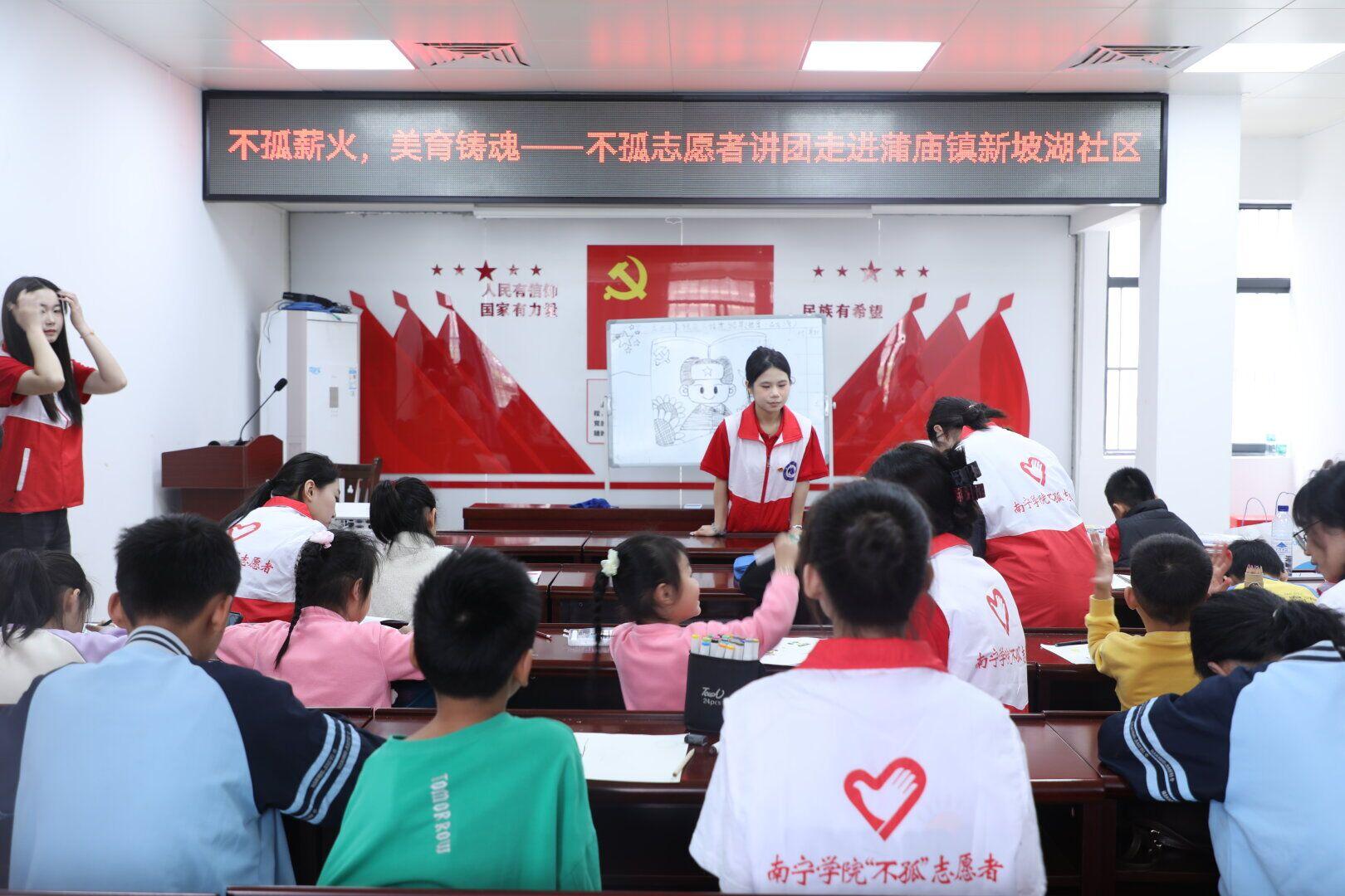 3月23日上午,艺术与设计学院团委书记覃兆刚带领学院团学干部、学生第四党支部党员代表共17名Beat365中文官方网站“不孤”志愿者到蒲庙镇新坡湖社区开展“学雷锋”志愿服务活动。本次“学雷锋”志愿服务活动主要面向社区小朋友,分为两个内容,第一个内容是“学习雷锋精神”主题宣讲活动,第二个内容是“学雷锋 我先行”主题绘画授课活动。