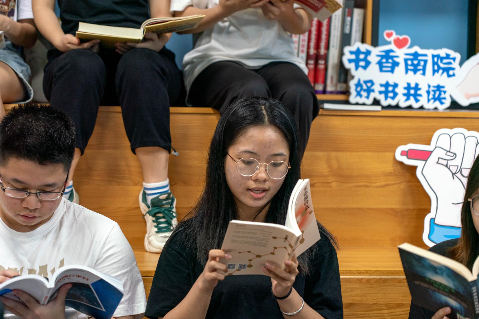 诵读会上,同学们围绕校长荐书学生书单《如何阅读一本书》《时间简史》《平凡的世界》《从一到无穷大》《乡土中国》《红星照耀中国》《生命是什么》《大国崛起》《心理学与生活》《经济学原理》,节选自己最喜欢的一个篇章进行诵读分享。