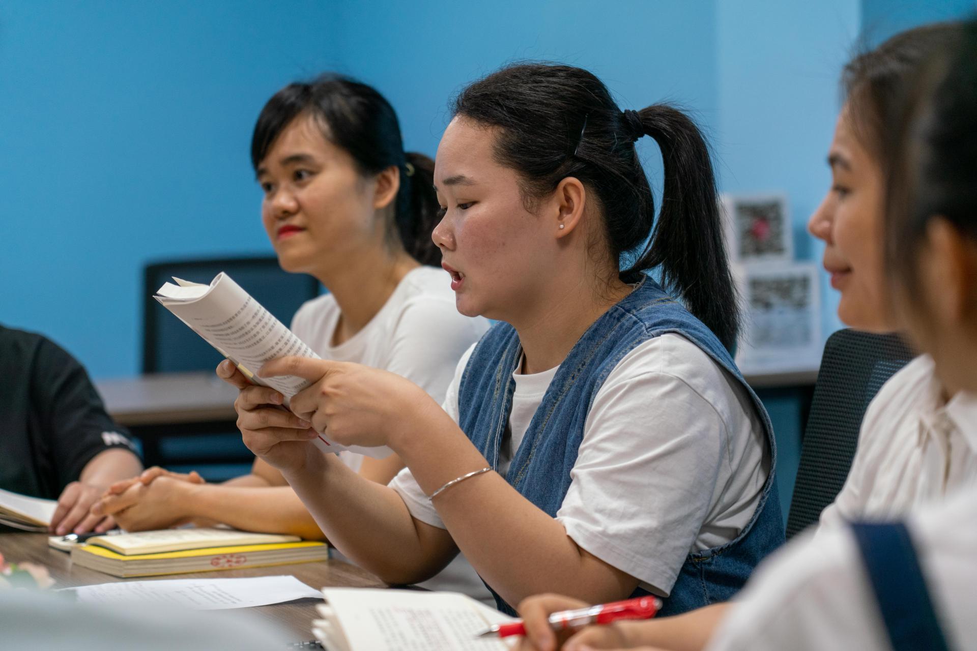 学校图书馆刘春婷老师作为领读人,为大家声情并茂诵读了《如何阅读一本书》里的“如何让一本书真正属于你自己”篇章,她读到:“阅读一本书应该像是你与读者之间的对话。在书上做笔记,其实就是在表达你跟作者之间相异或相同的观点,这是你对作者所能付出的最高的敬意。”