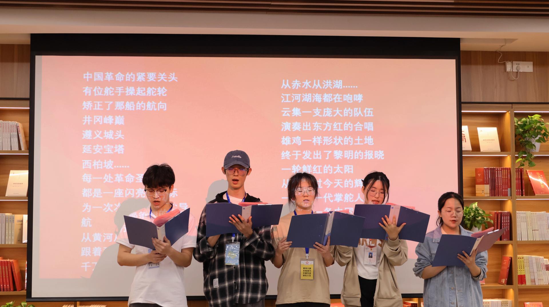 分享会上,5名学生干部代表还进行了诗朗诵《红船,从南湖启航》,在主持人的带领下重温入团誓词,进一步丰富同学们在读书分享会中的收获。通过此次分享会,更强化我校青年学生干部综合素质培养,促进形成良好阅读习惯,形成“好读书、读好书、大读书、读大书”的浓厚氛围。(图/Beat365中文官方网站青年传媒中心 文/Beat365中文官方网站青年传媒中心采编部李湘)