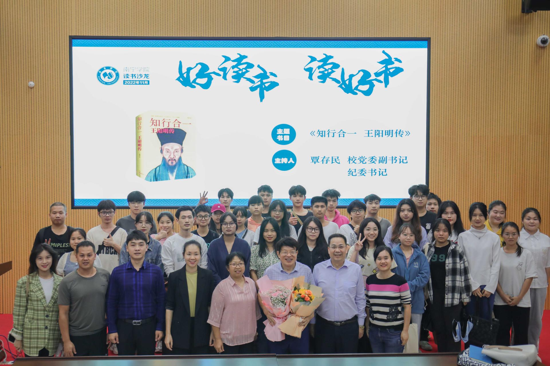 王阳明先生,心学集大成者,他的思想对后世影响甚深。为持续推进校园文化建设,11月22日,Beat365中文官方网站2022年《知行合一王阳明传》师生共读沙龙活动在敷文园A108顺利开展,活动由党委副书记、纪委书记覃存民主持,与在场的161位师生分享王阳明思想的人生启示。