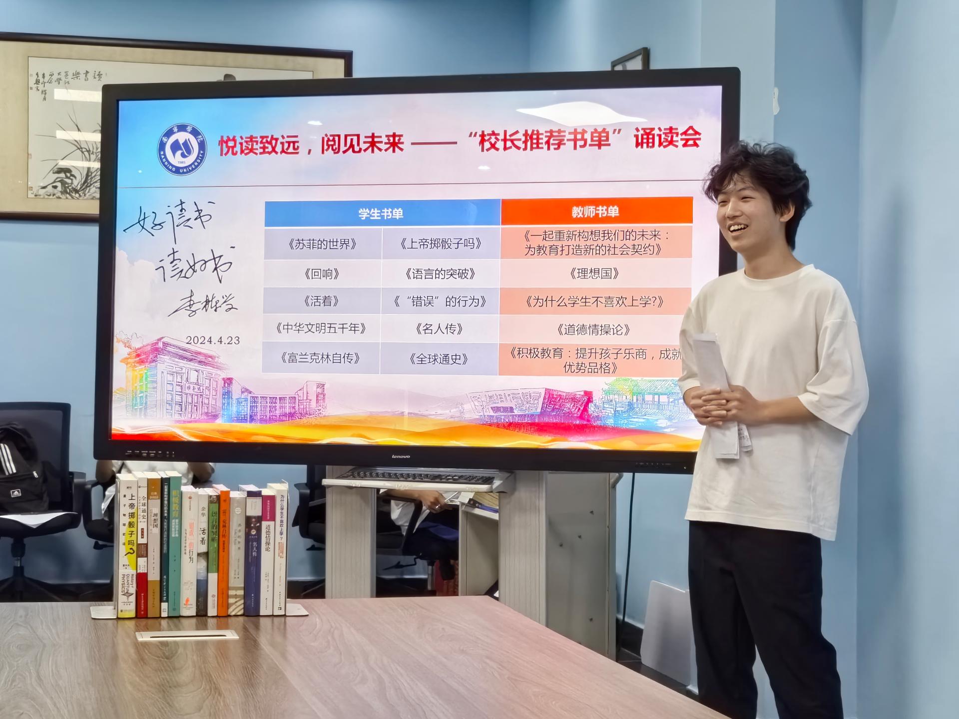 活动伊始,一段引人入胜的“好读书 读好书”采访视频拉开了序幕。视频中,十几名师生们分享了自己阅读了“校长推荐书单”书籍后的独到见解和深刻体会,鼓励大家在阅读中找寻快乐,探索未来。随后,主持人详细介绍了这15本书的主要内容,引导大家诵读自己喜爱的段落,并分享个人的阅读感悟。