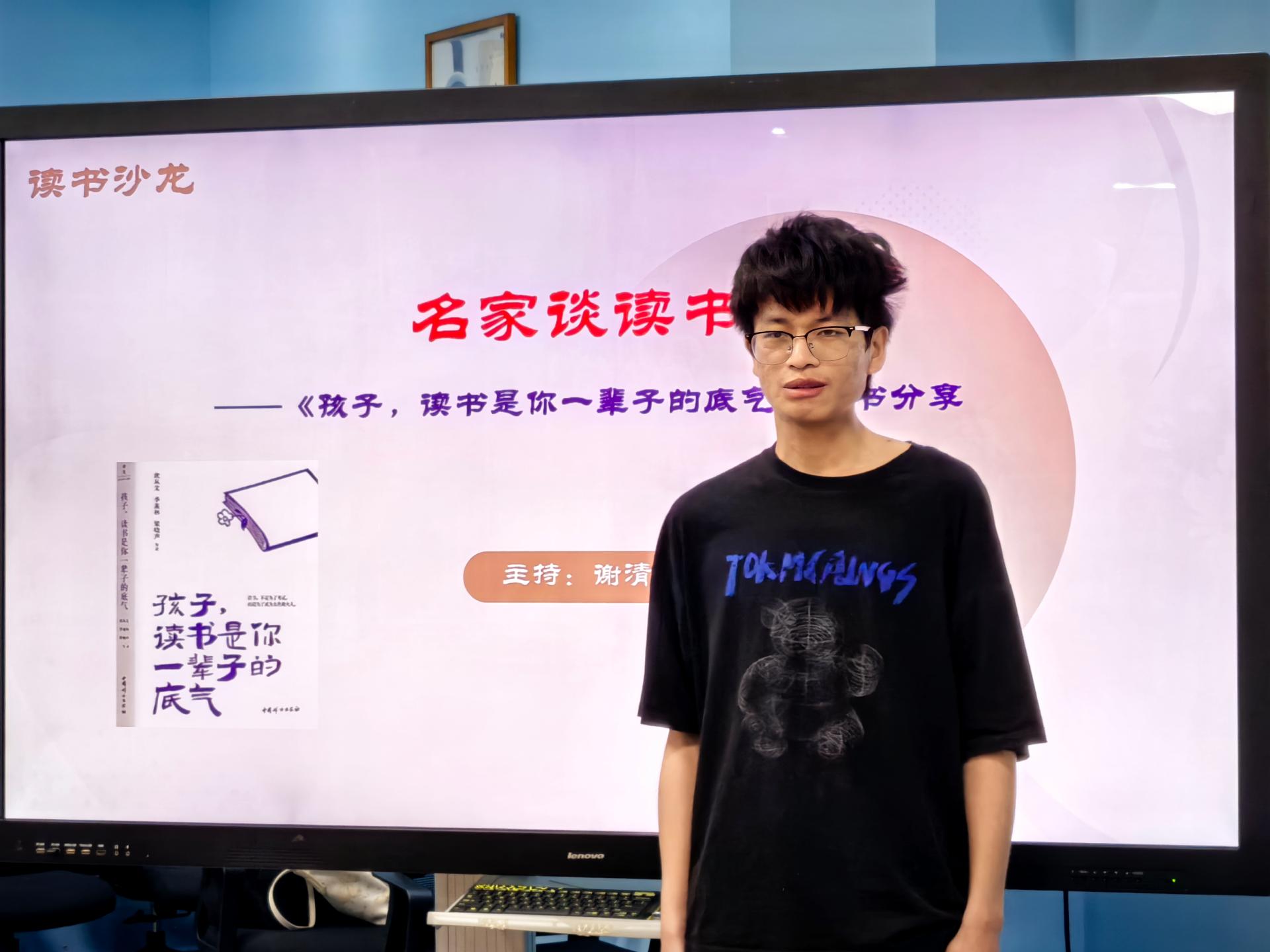 活动以《孩子,读书是你一辈子的底气》一书中胡适、鲁迅、梁晓声等20位中外名家的34篇经典散杂的品读为切入点,图书馆馆长谢清带领同学们开展名家阅读观的分享与讨论,共品不同时代背景下名家对读书的独到见解。