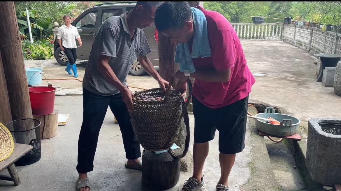 课程团队欣喜地看到,红色文化在塘洞村得到较好传承,在乡村振兴的产业化路上,农业产业化发展在不断探索实践中出现了较多专业化种养领头人。村民唐斌潜心研究红军翻越老山界的历史,成为远近闻名的红色经典义务解说员,课程团队参观了唐斌自建了的农家书屋,与他交流了传承红色基因的体会。课程团队与首个把珍珠李引种到这高海拔山地的苗族同胞李小兵分享了乡村产业发展的道与术,并参观了他的珍珠李种植基地,与正在摘果的几位村民朋友分享了高海拔山地珍珠李的独特风味;与广西道德模范杨进美等乡贤就乡风文明建设与红色文化传承开展了有益交流。这些专业化种养领头人、道德模范是《社会实践:传承英雄正气新体验》重要的课程建设资源。(《社会实践:传承英雄正气新体验》课程团队供稿)