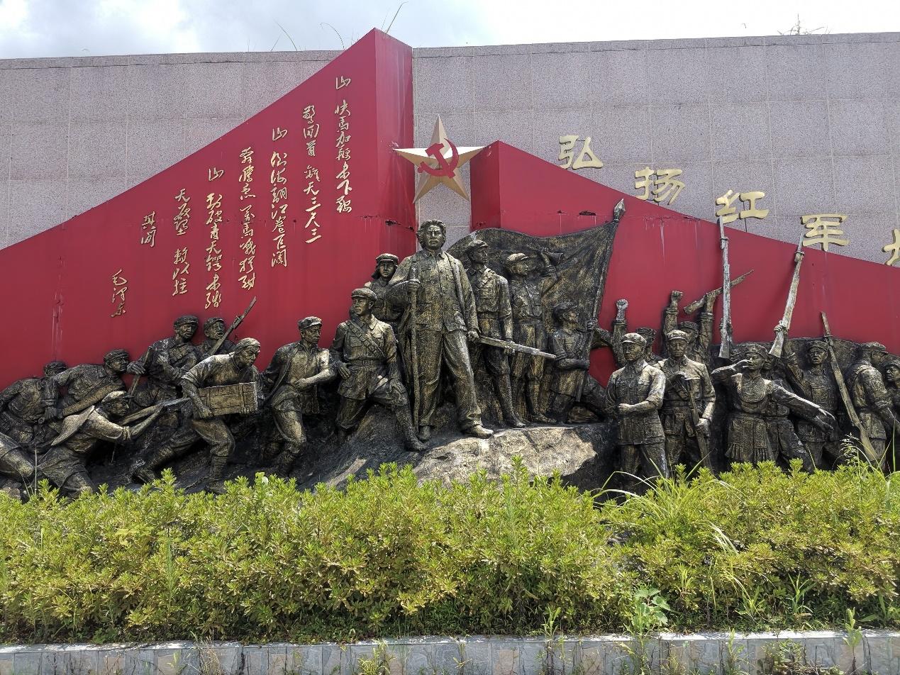 湾里红色文化廉政基地的红军翻越老山界雕像