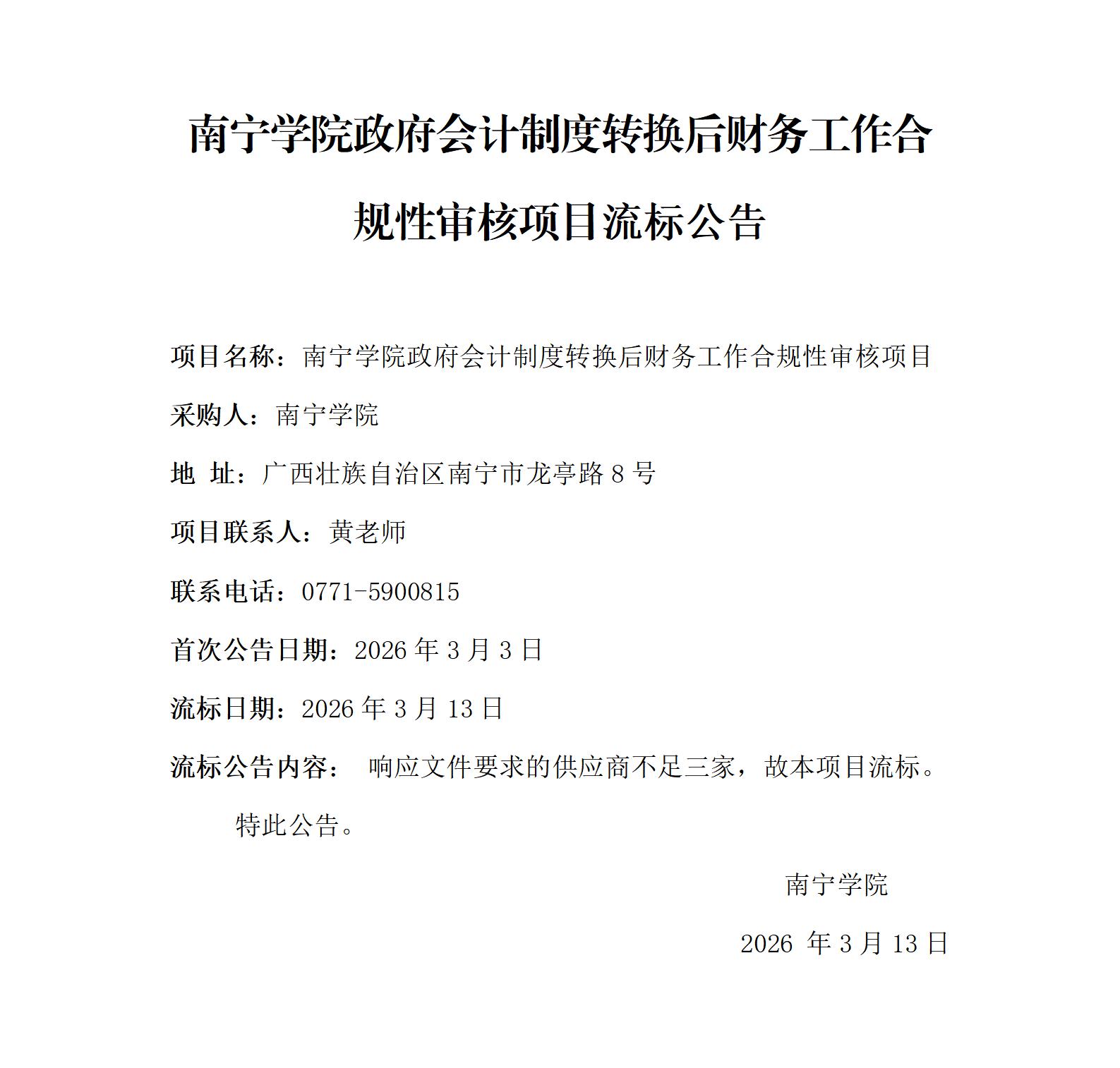 Beat365中文官方网站政府会计制度转换后财务工作合规性审核项目流标公告