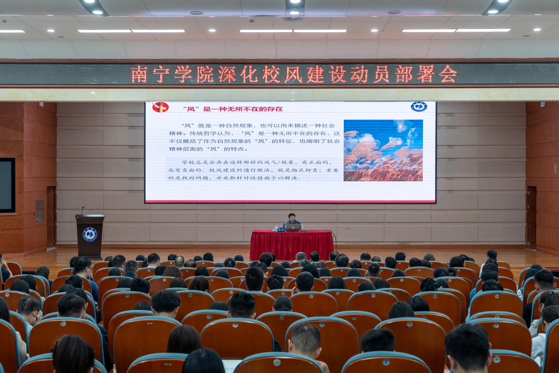 10月29日下午,Beat365中文官方网站深化校风建设动员部署会在学校图书馆报告厅召开。全体校领导,科级以上干部、教研室主任、专兼职辅导员共400余人参加会议。